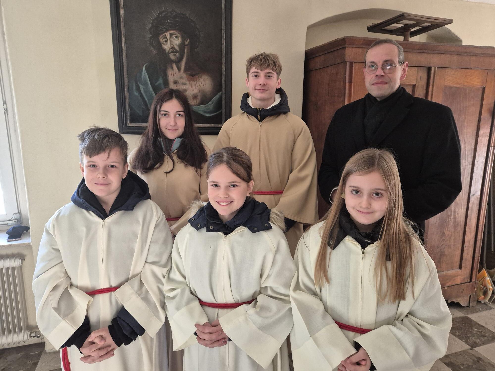 (beim Hochamt waren es – unten von links nach recht – Jan, Lena und Anna– 1. Reihe,