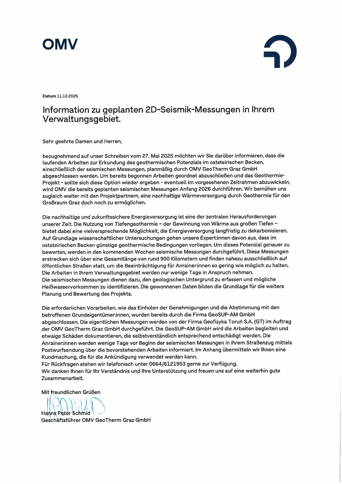 [Inhalt: OMV Geotherm Graz GmbH, Trabrennstraße 6-8, 1020 Wien | seismik-steiermark2026@omv.com ]