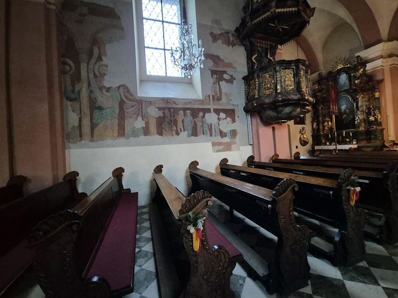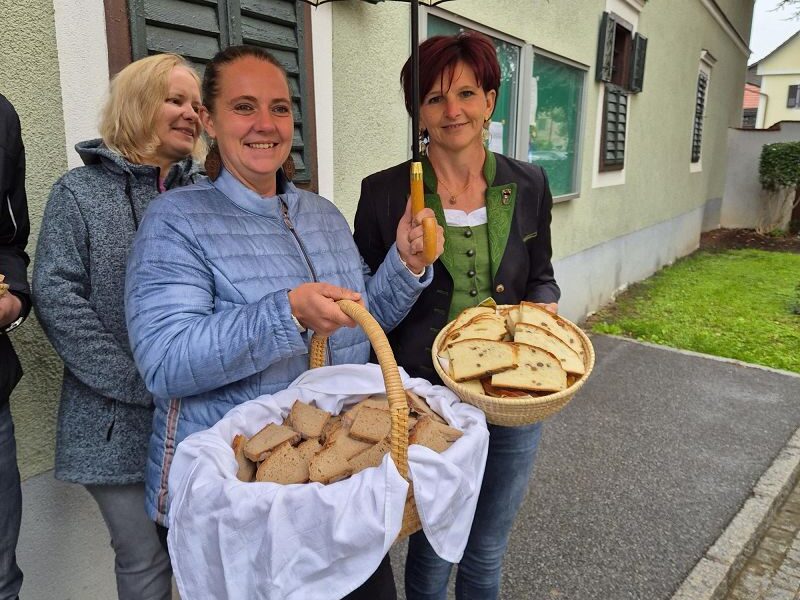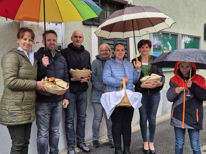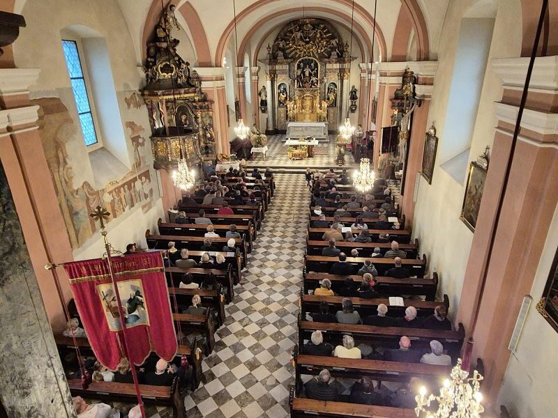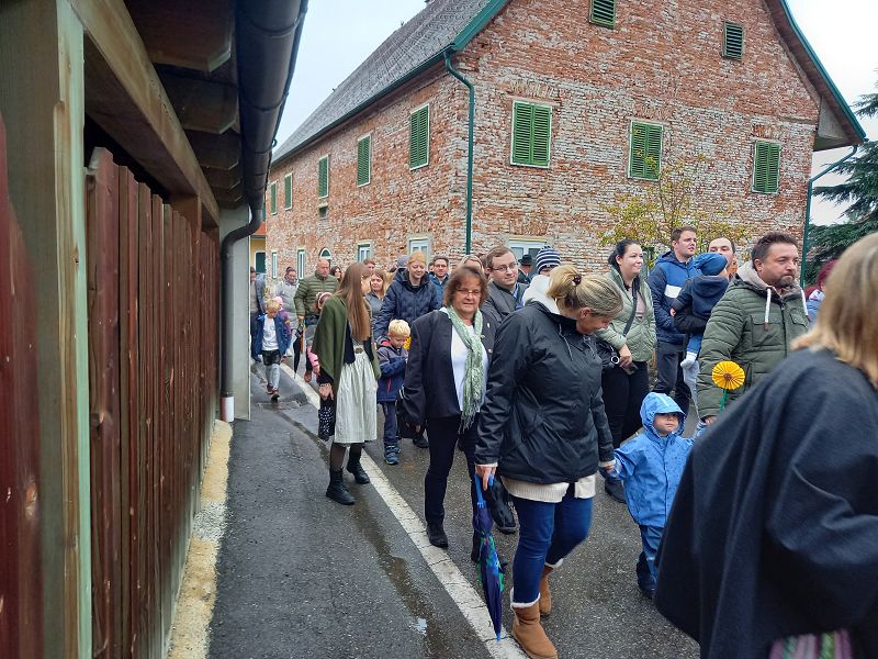 Der musikalische Empfang aller Pfarrbewohner:innen am Platz vor der Pfarrkirche durch die Jugendkapelle Mooskirchen musste diesmal wetterbedingt leider entfallen. Es war vereinbart, dass der Beginn in der Pfarrkirche erfolgt.
