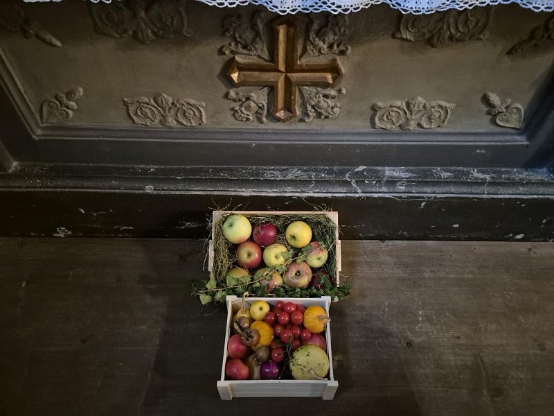 bereit erklärt und das Gotteshaus, den Eingang und den Altarraum – insbesondere auch die „Wangen“ der Bestuhlung –, herbstlich farbenbunt geschmückt.
