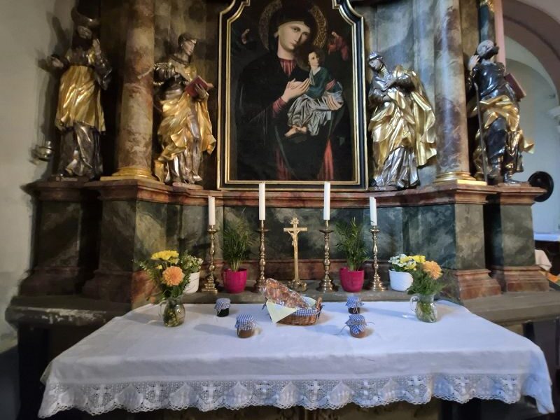 Weil innerhalb des Pfarrgebietes BewohnerInnen eines bestimmten Ortsteiles der die Pfarre bildenden Gemeinden Mooskirchen und Söding um den aktuellen Kirchenschmuck gebeten werden, haben sich diesmal jene von