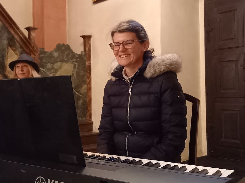 Elvira Riedler bediente bei dieser hl. Messe neben der Orgel auch das Klavier in bewährter Art zu dem Anlass passenden Liedern, die mit Kindergarten-Kindern geprobt, ihnen „geläufig“ sind und beherzt gesungen wurden.
