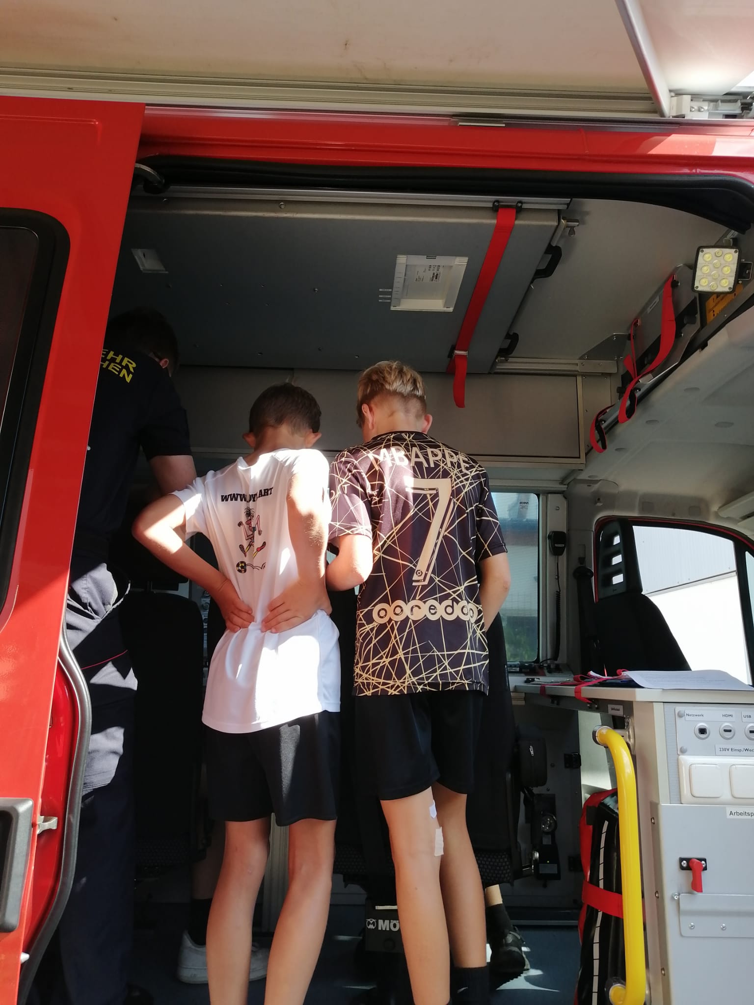 Besonders beeindruckend war die Besichtigung der modernen Einsatzfahrzeuge – eines davon ist sogar als mobiles Einsatzzentrum ausgestattet. Die Kinder durften nicht nur hineinschauen, sondern auch Fragen stellen und vieles anfassen und ausprobieren.