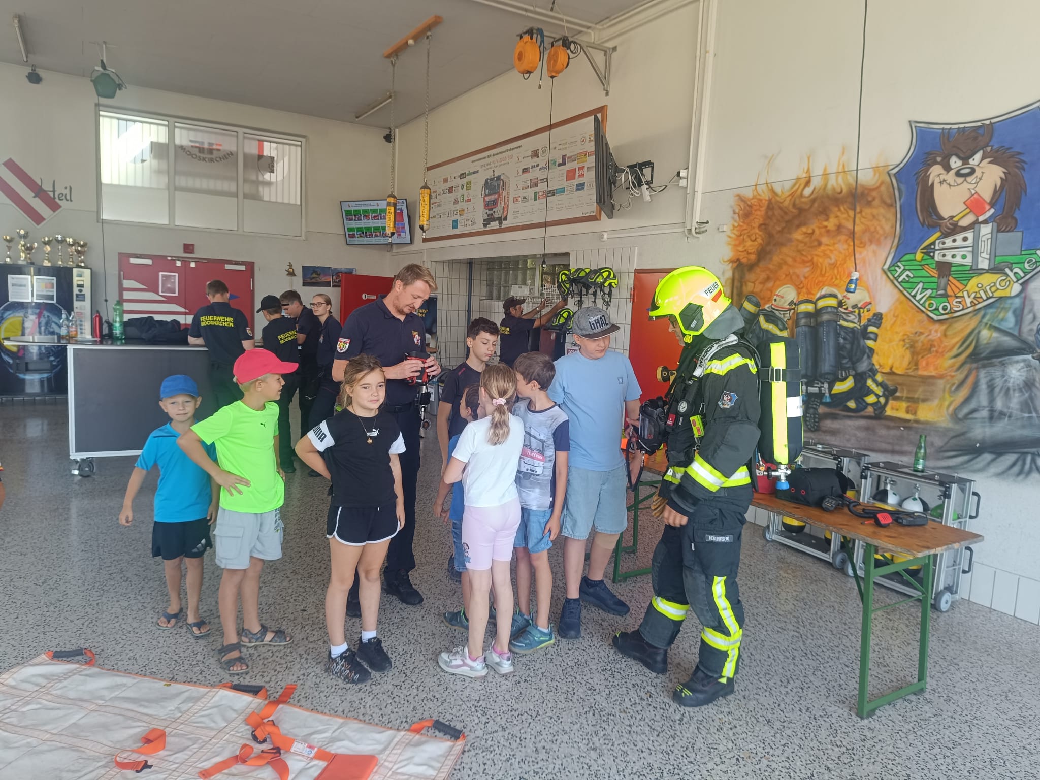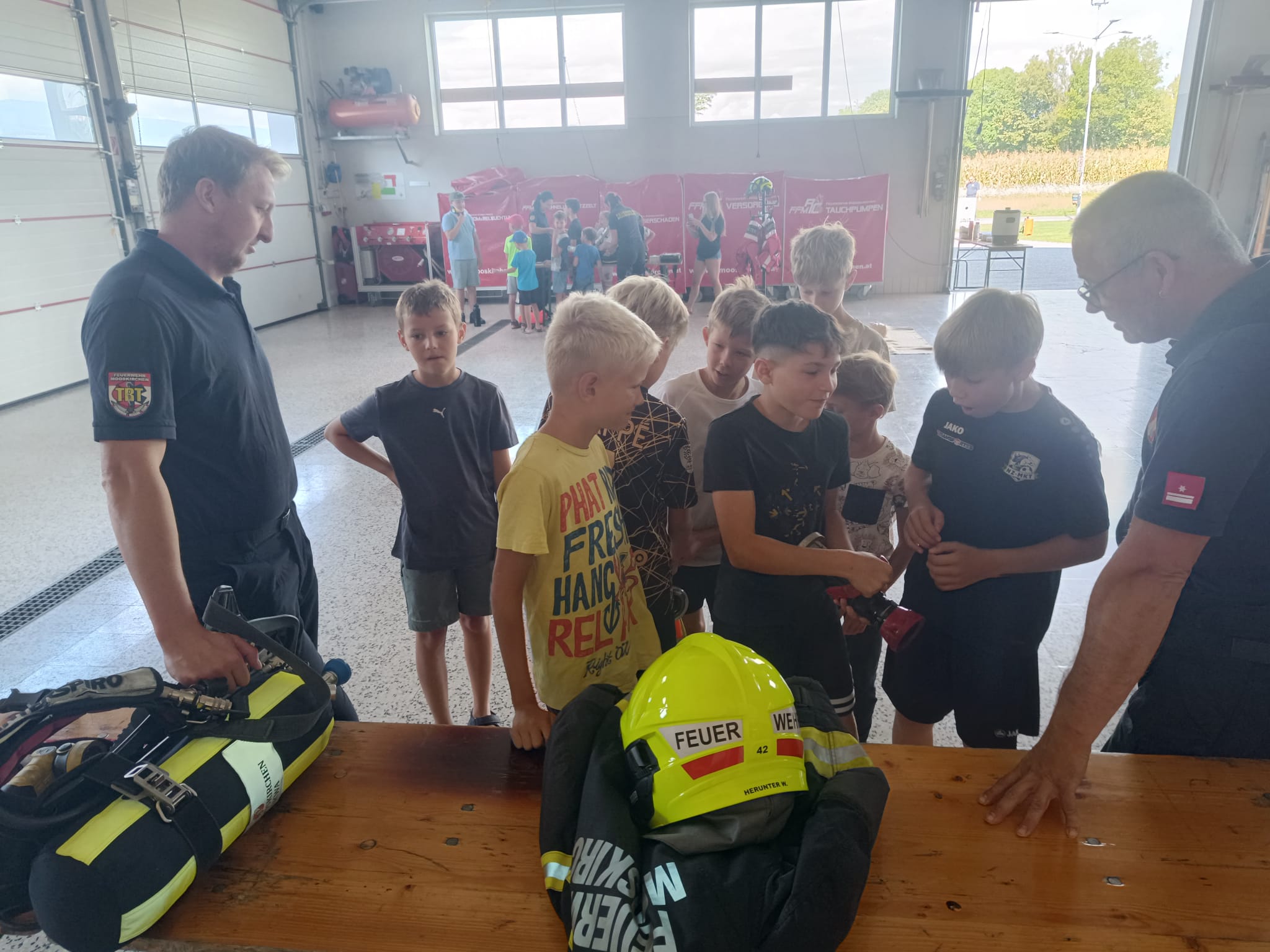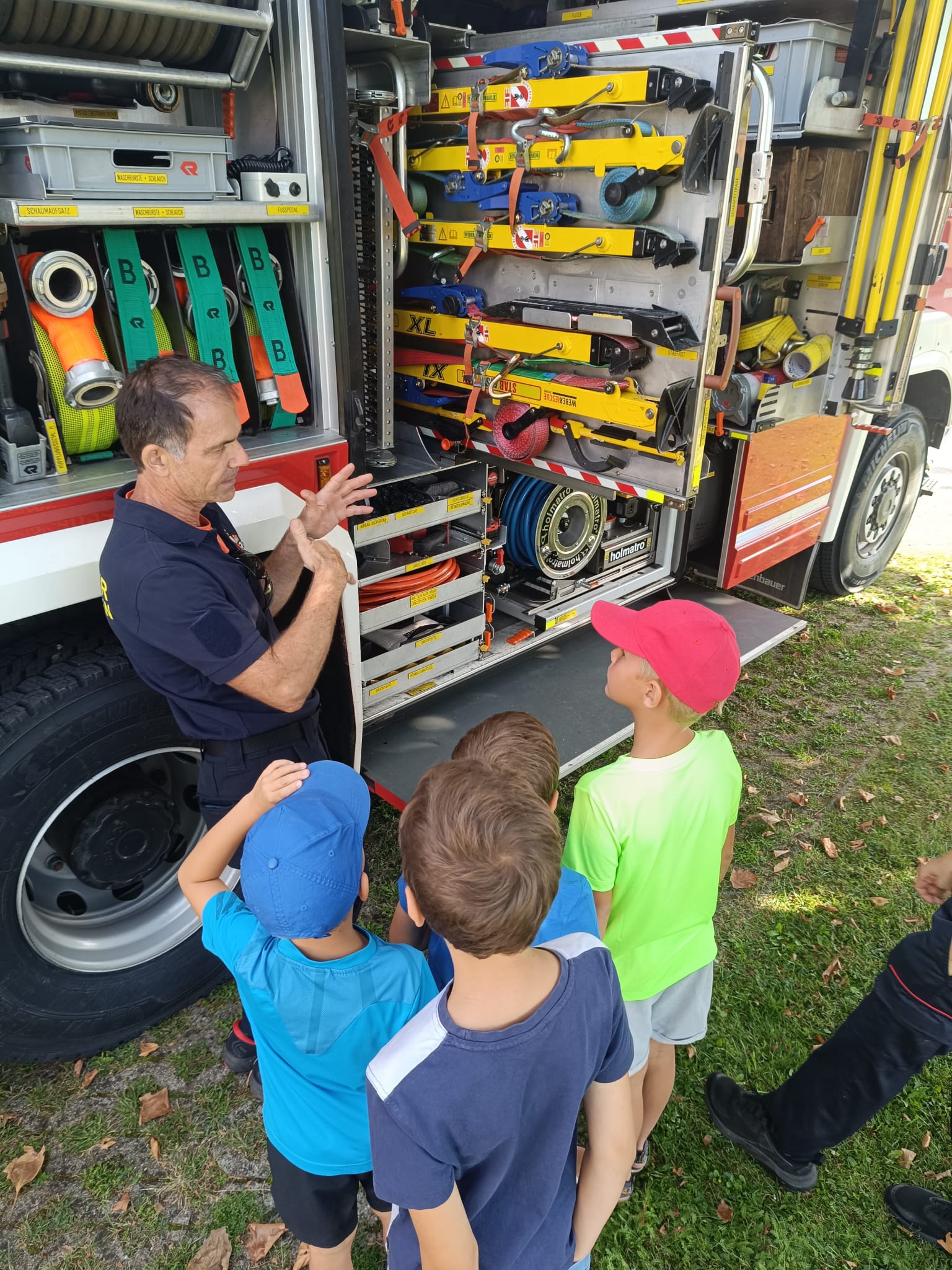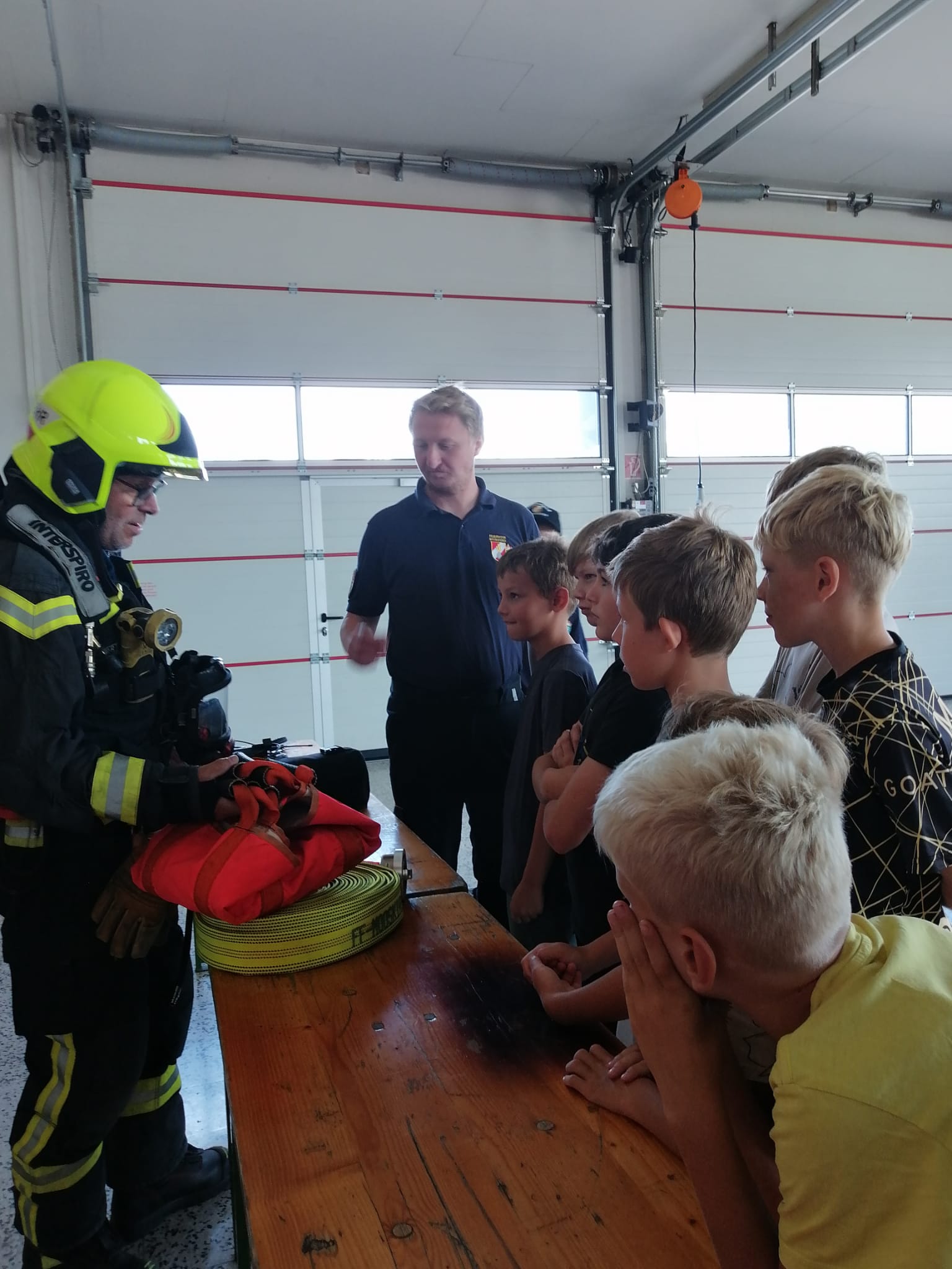 Am letzten sonnigen Ferientag trafen sich einige Kinder, die an der diesjährigen Ferienbetreuung teilgenommen haben bei unserer Feuerwehr und hatten so die Möglichkeit, an verschiedenen Stationen einen spannenden Einblick in deren Arbeit zu bekommen.