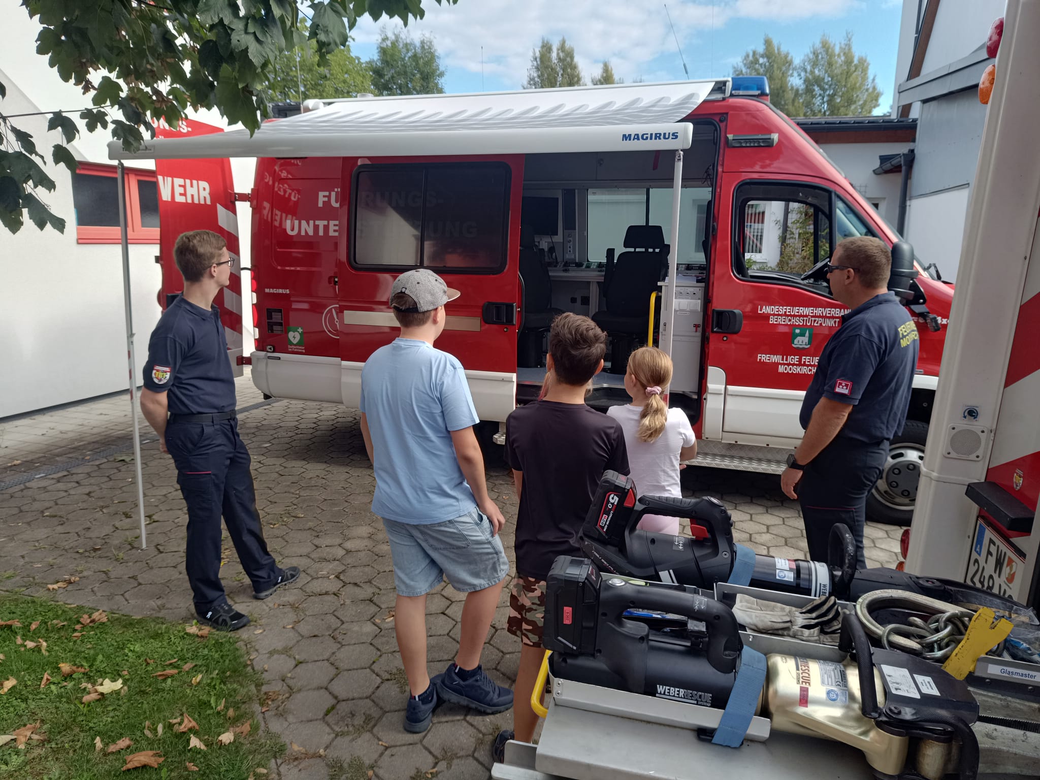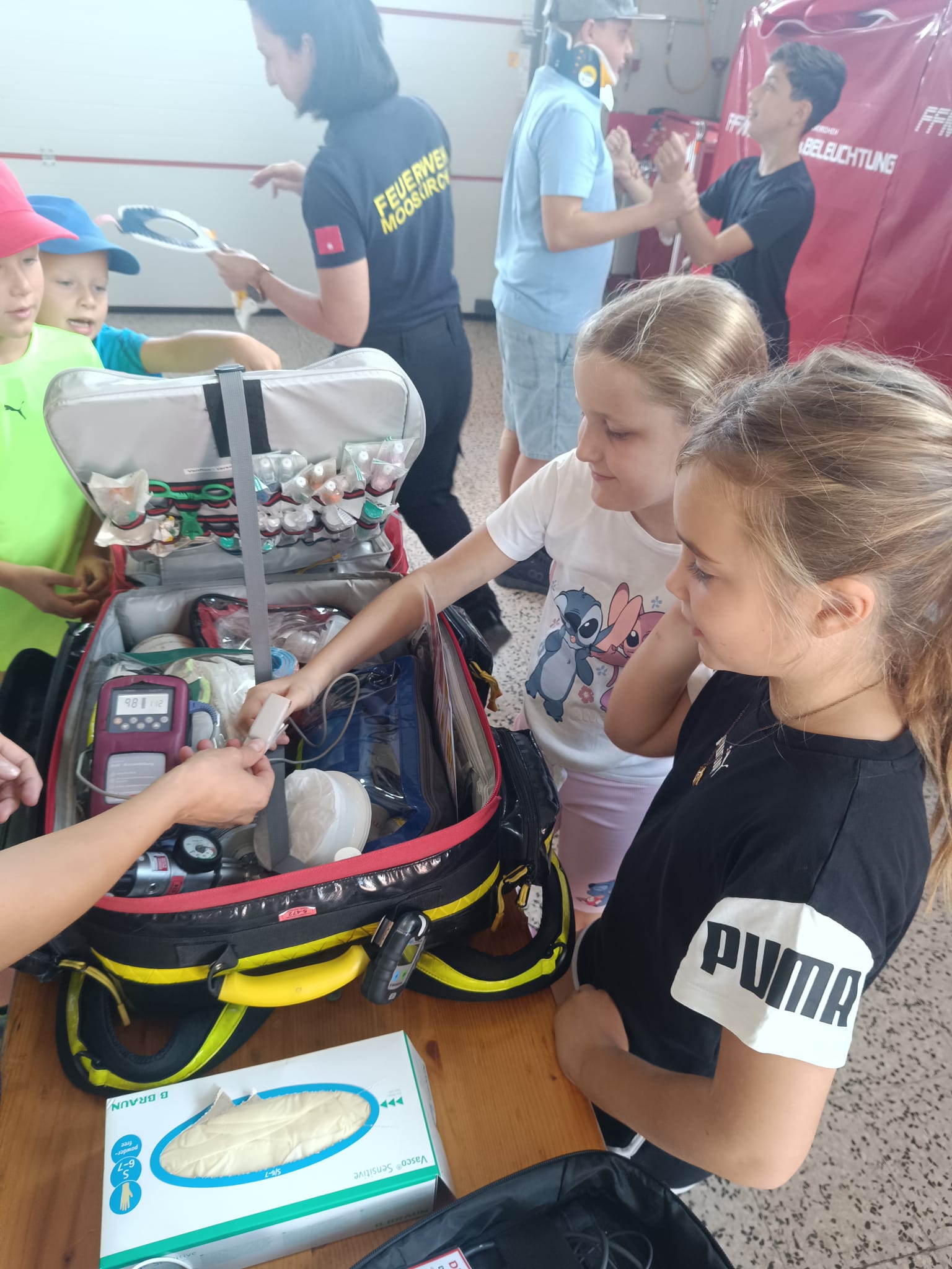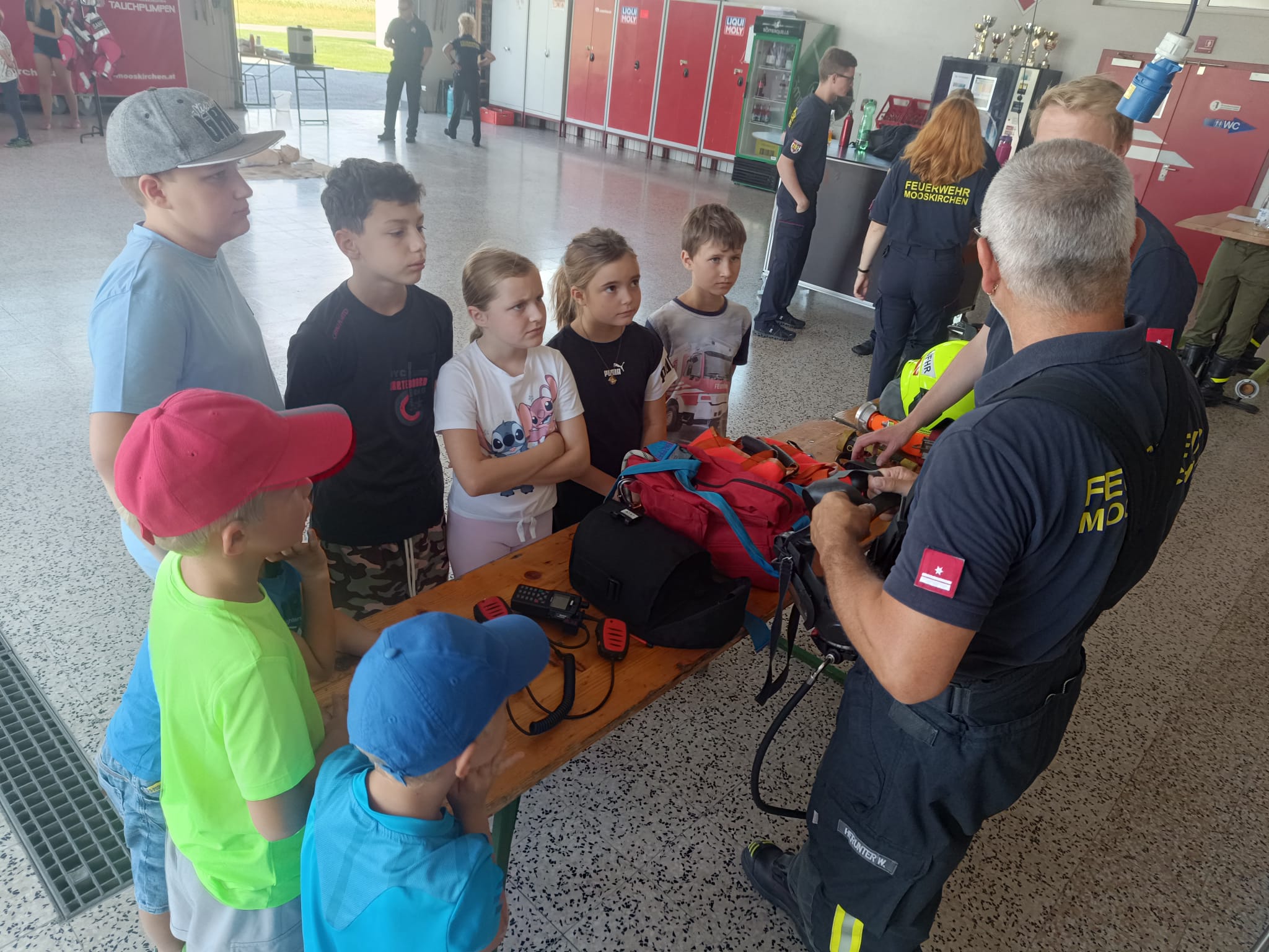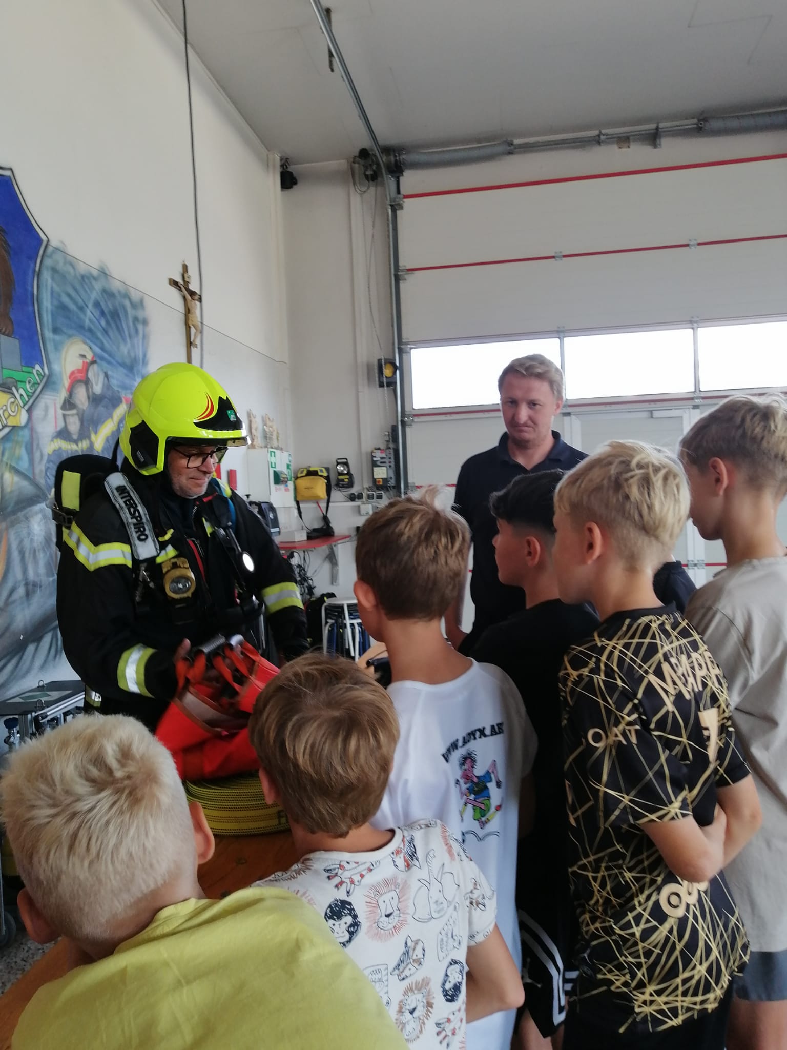 Am letzten sonnigen Ferientag trafen sich einige Kinder, die an der diesjährigen Ferienbetreuung teilgenommen haben bei unserer Feuerwehr und hatten so die Möglichkeit, an verschiedenen Stationen einen spannenden Einblick in deren Arbeit zu bekommen.