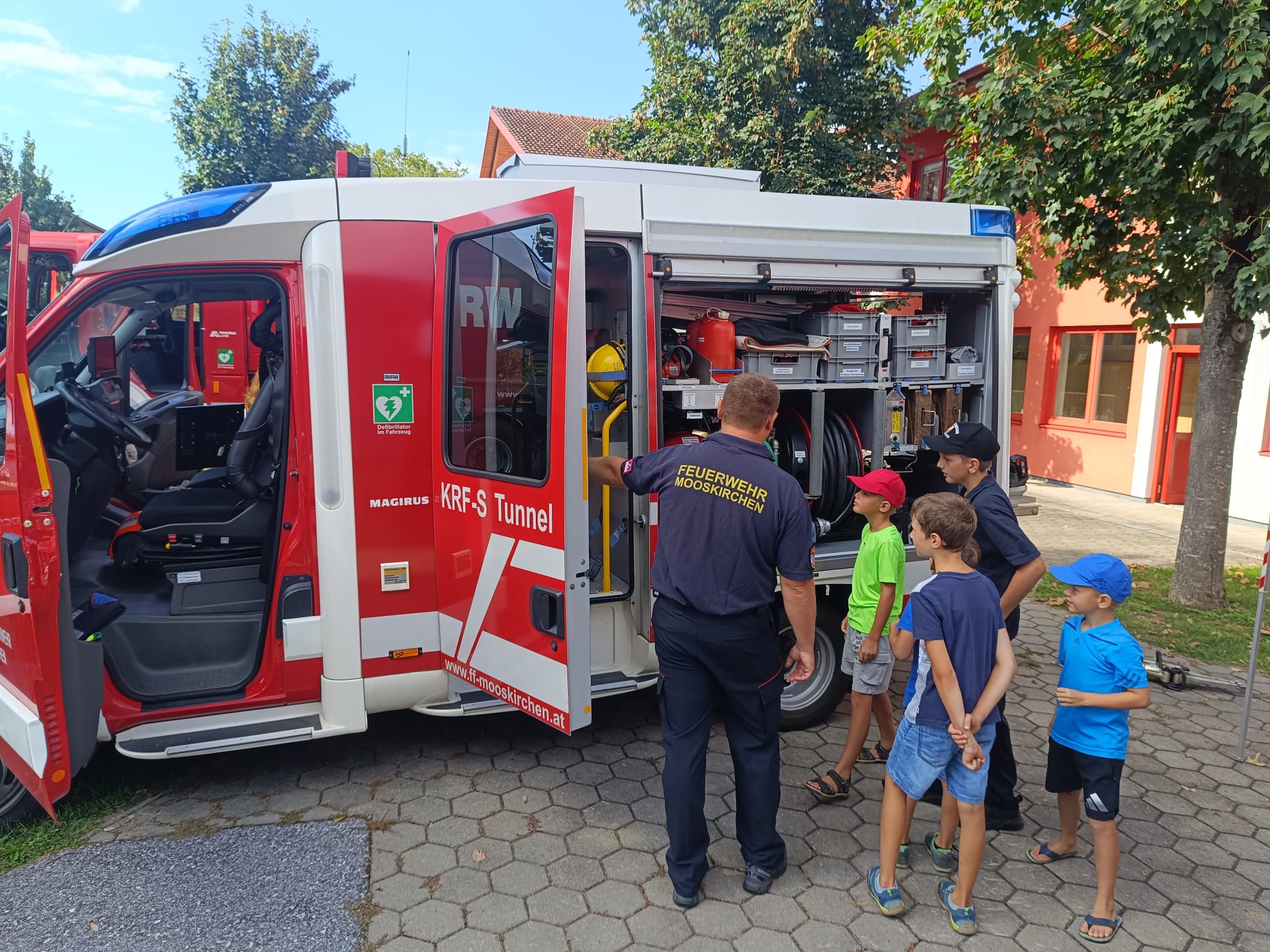 Ein herzliches Danke an Herrn Kommandanten ABI Josef Pirstinger und seinem engagierten Team, den Jungfeuerwehrburschen und –mädchen, den JugendbetreuerInnen und den FeuerwehrkameradInnen, die den Kindern geduldig alle Fragen rund um die Feuerwehr beantwortet haben. Nach einer gemütlichen Pause bei Würstel, Getränke und Eis zum Abschluss wurden die Kinder – mit den besten Wünschen für einen schönen Start in ein erfolgreiches Schuljahr – von ihren Eltern wieder abgeholt.
