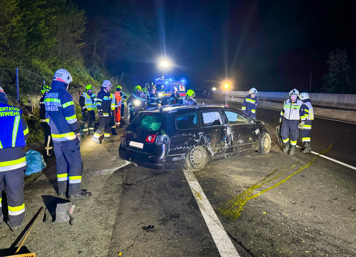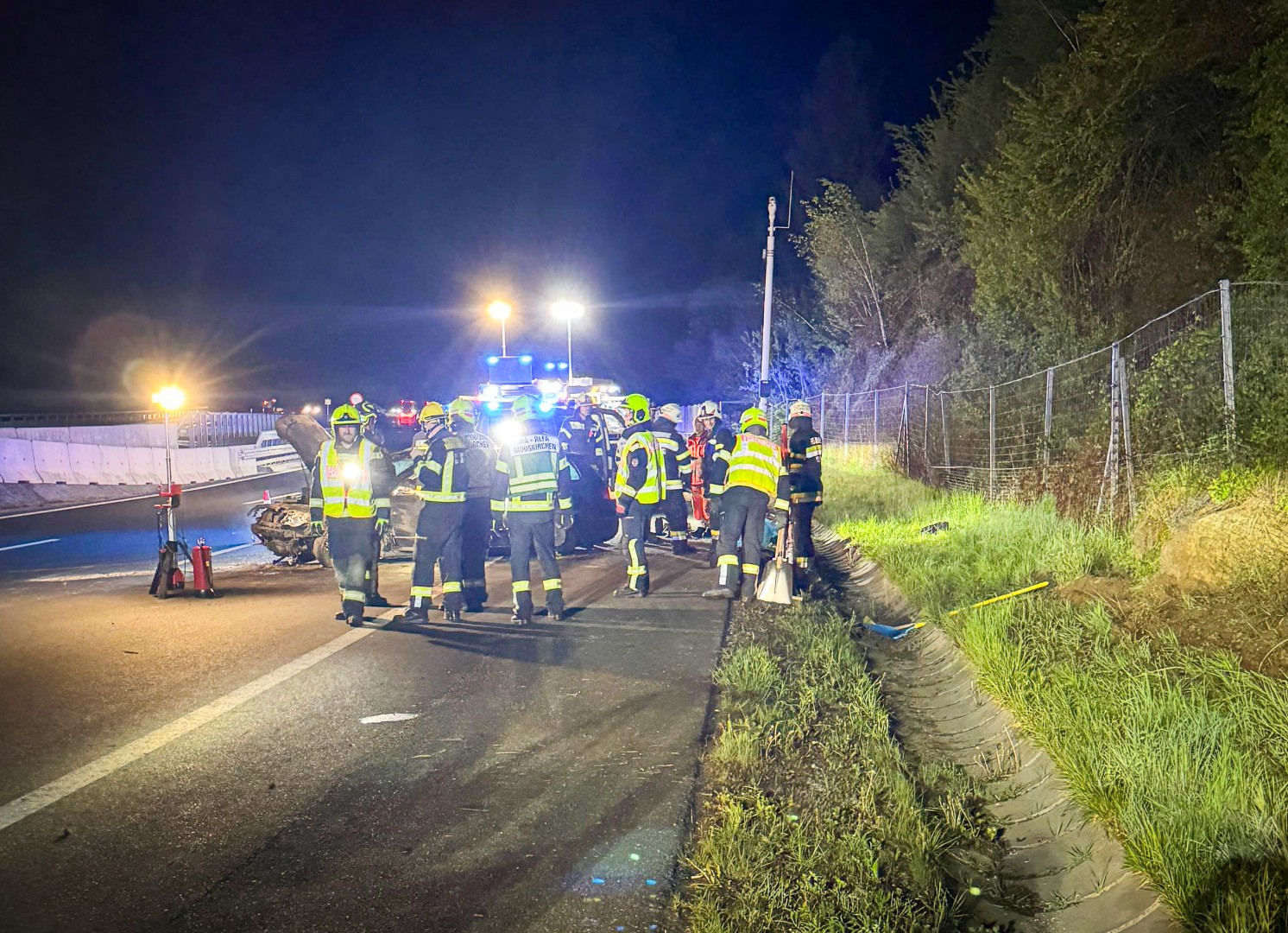 In der Nacht auf Montag wurden die Feuerwehren Mooskirchen und Steinberg um 03:36 Uhr mittels Sirenenalarm zu einem schweren Verkehrsunfall auf die A2 Südautobahn in Fahrtrichtung Kärnten gerufen.
