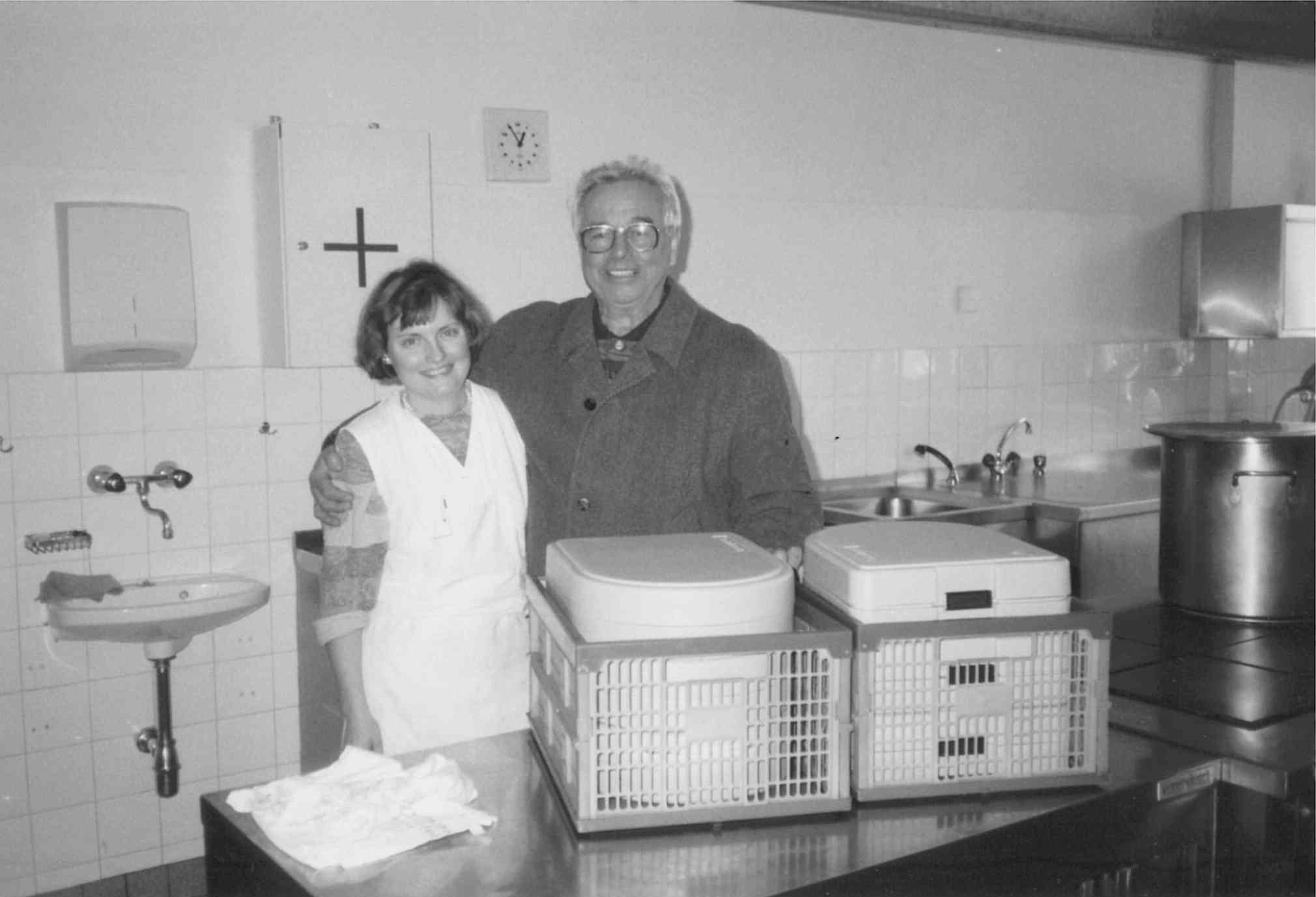 zu können. Erste Versuche, das mit zuvor tiefgekühlten Produkten zu erfüllen, waren wenig erfolgreich. Die örtliche Gastronomie könnte die Wünsche auch nicht erfüllen. Glücklicherweise ergaben sich für ihn, Engelbert Huber und dem damaligen Pfarrer Johann Veit Gespräche mit der Lebenshilfe in Söding. Innerhalb kurzer Zeit war es möglich, von dort , aus der Großküche, an allen Tagen der Wochen das Mittagessen sogar zu den älteren Personen zuzustellen. Das