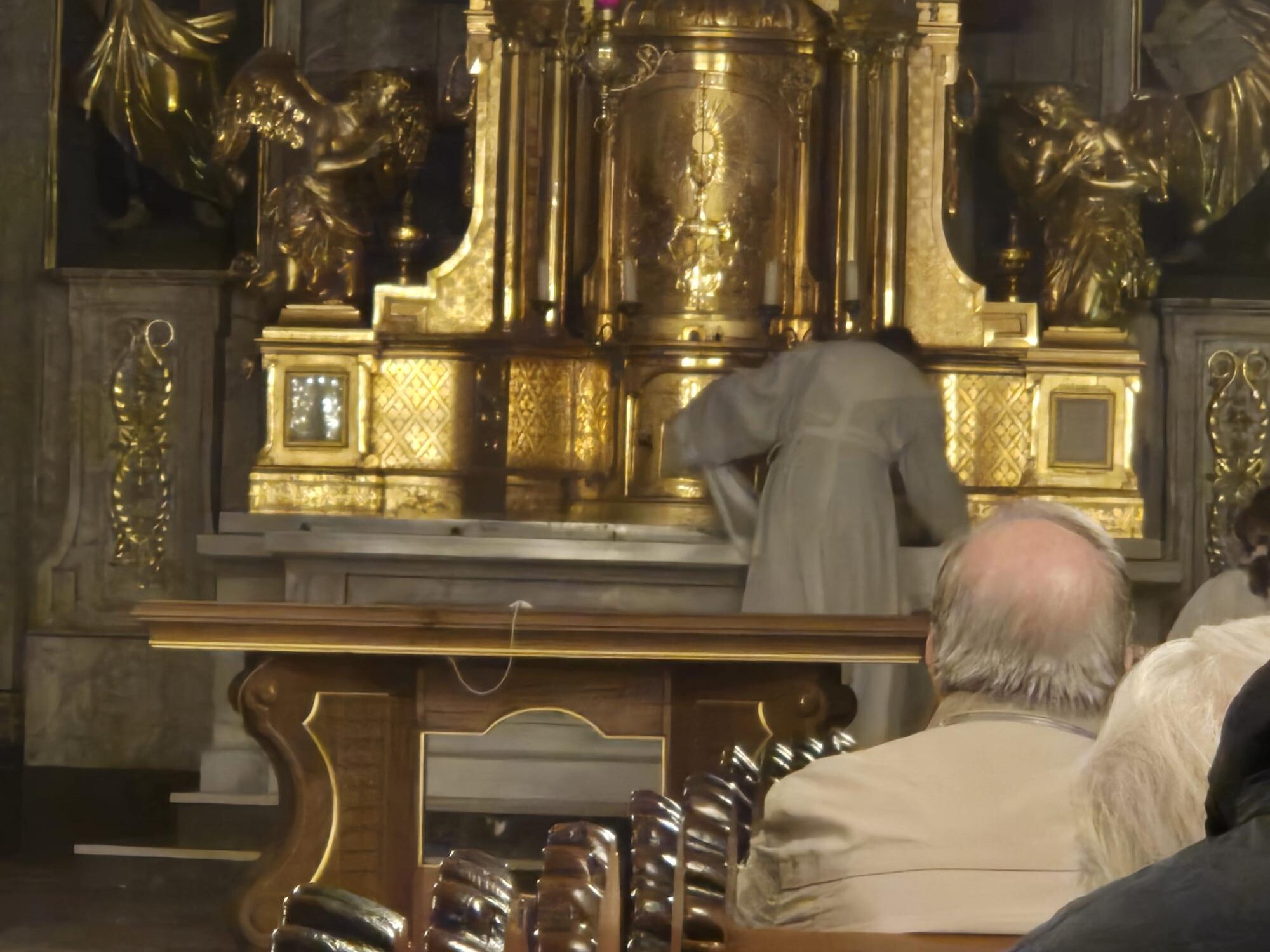 Am Ende der hl. Messe wies der Geistliche auf das Besondere in der Kirche an diesem Abend hin. Das Allerheiligste wird an einen anderen Platz gebracht,