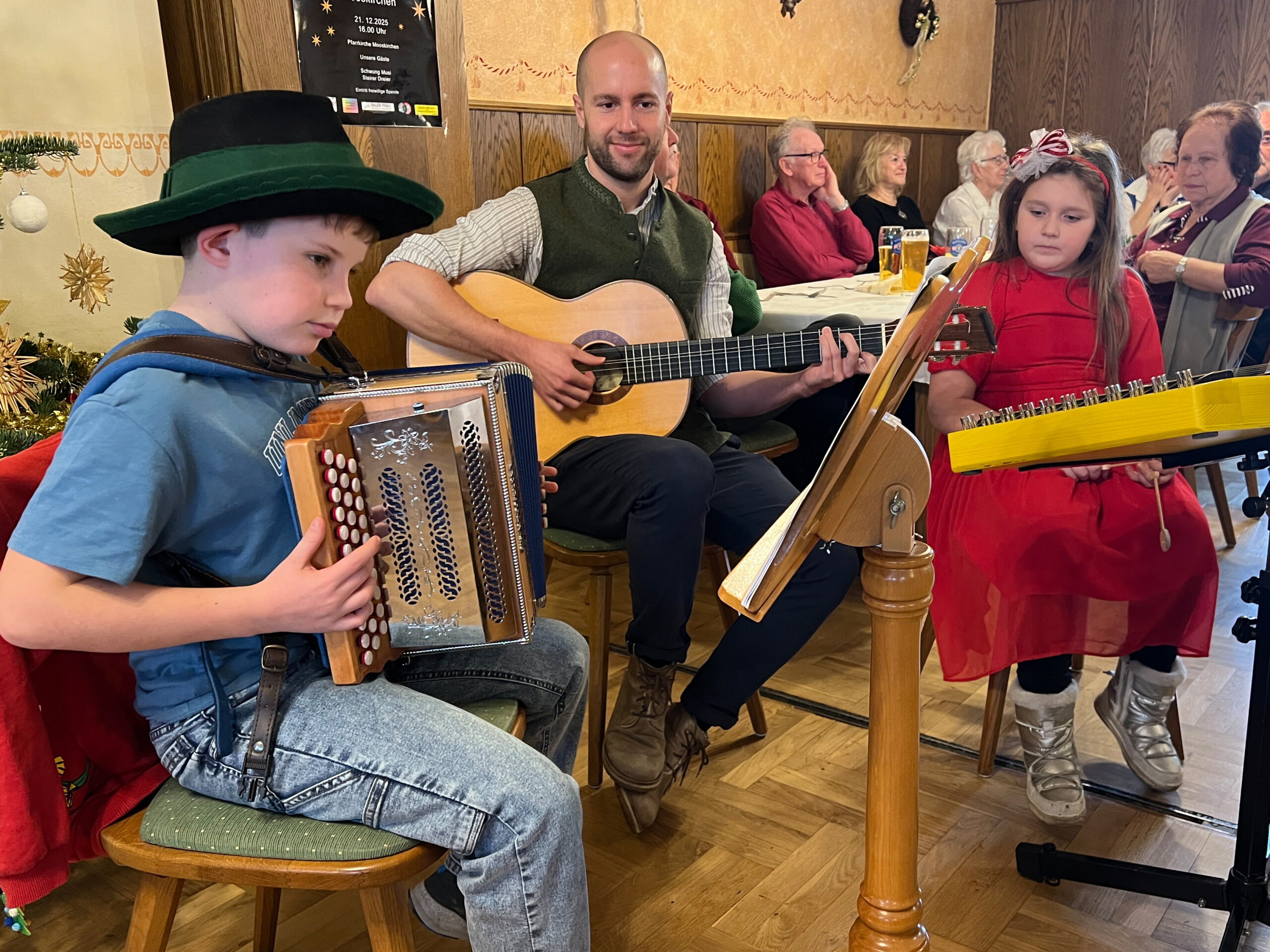 Danach war die Vorschau auf das Jahr 2026 an der Reihe. Mit der Ausgabe des Fahrtenflyers erübrigte sich eine lange Vorstellung und somit konnten die Jahreshauptversammlung mit Klängen jugendlicher Musiker abgeschlossen werden. Musiklehrer Christoph Koegeler spielte mit Lukas Reiter und Helena Taucher einige Weihnachtslieder. Danach servierte Martina Steinberger die Köstlichkeiten ihrer Küche.