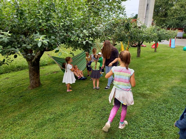 Bei Familie Zweiger wurden die Kinder mit Kuchen und Getränken versorgt. Bis zur Mittagszeit durften die Kinder die wunderschön gelegene und sehr gepflegte Hofanlage für sich in Anspruch nehmen.
