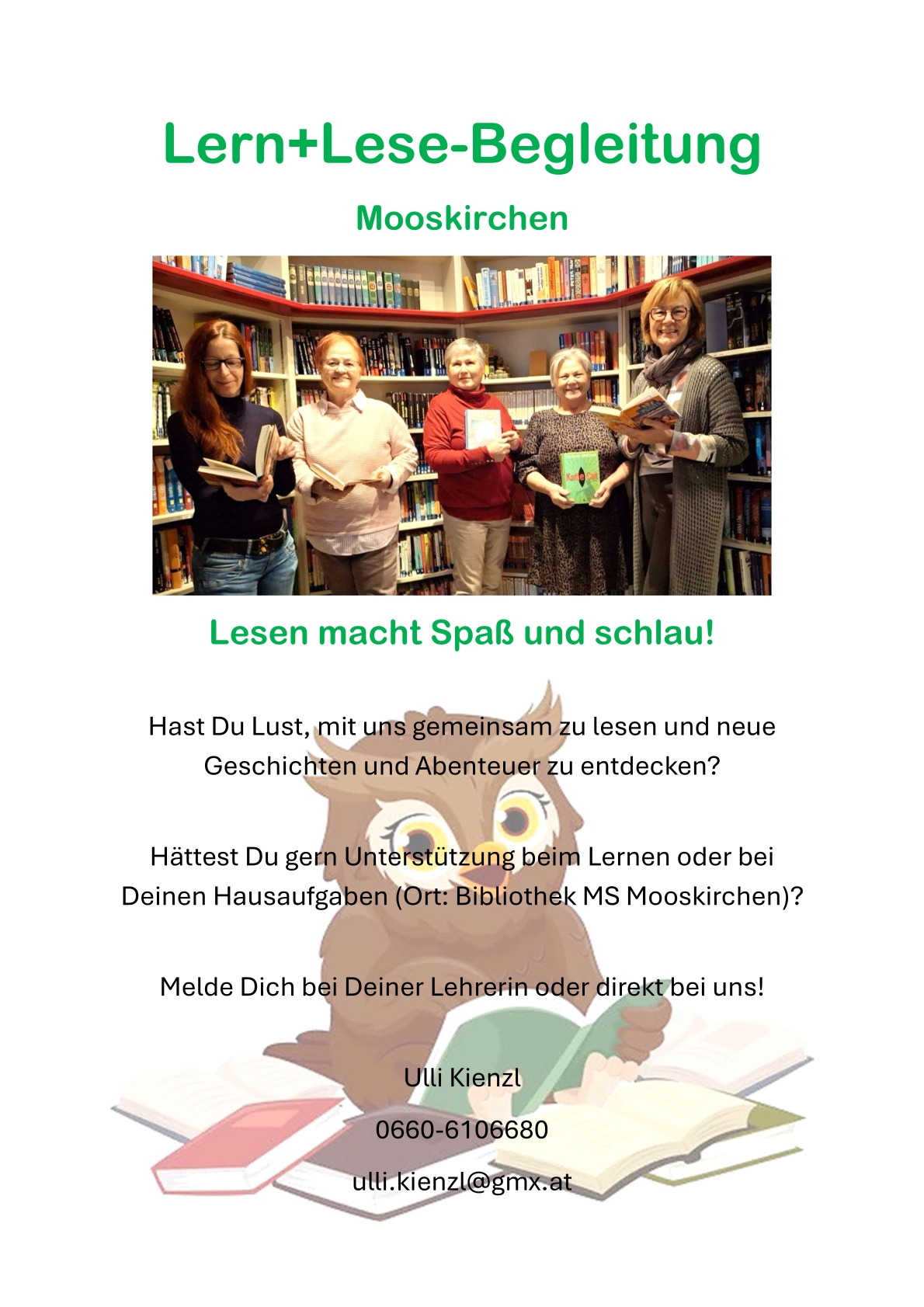 Unter dem Motto „Lesen macht Spaß und schlau“ startete am 21. Jänner das ehrenamtliche Projekt (entstanden aus dem Tauschkreis Mooskirchen) mit dem Ziel, die Lesefähigkeit der Schüler zu trainieren und Lehrer und Eltern in dieser Hinsicht zu entlasten.