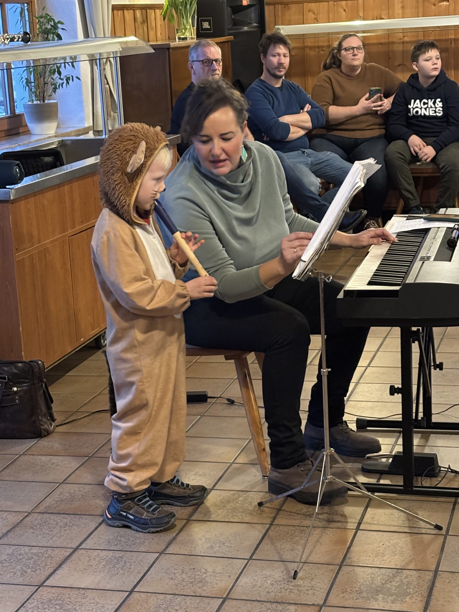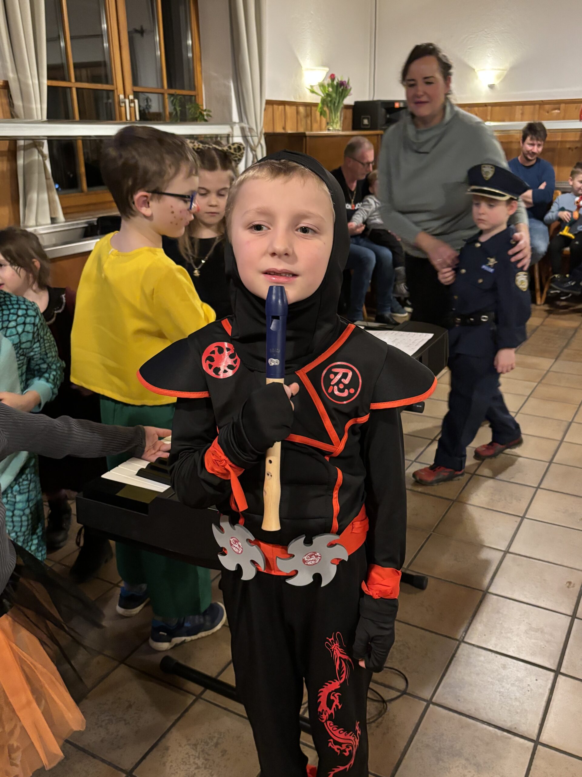 Zum Faschingskonzert lud unsere Blockflöten- und Oboenlehrerin MMag. Leitinger Susanne mit ihren Schüler/innen in den Landgasthof Lazarus. Ein bunter Liederreigen spannte sich von den Kinderlieder-Hits „Kuckuck“ und „Ist ein Mann in Brunnen gefallen“ über „Pumuckl“, „Seniorita“ bis hin zu barocken Oboenklängen. Und so bunt wie das Programm erwiesen sich auch die Verkleidungen der kleinen und größeren Künstler/innen.