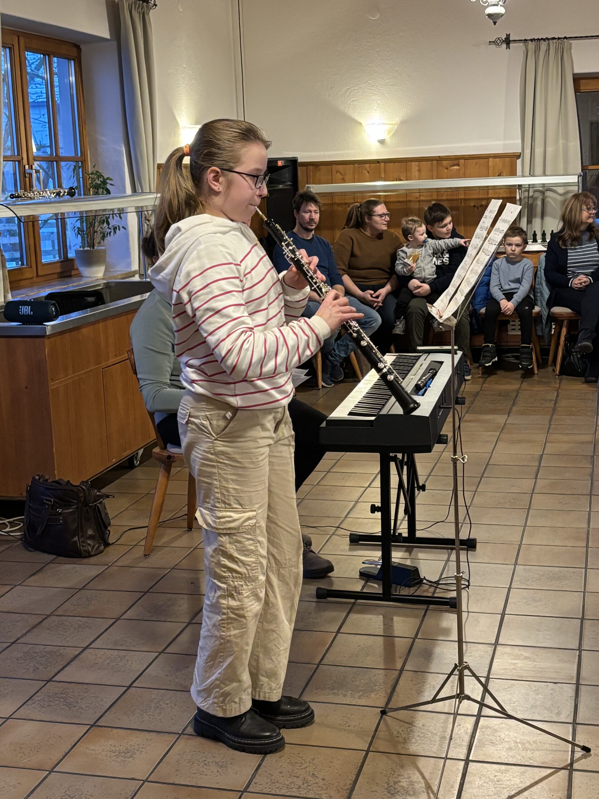 Klein und musikalisch fein fand die Vorspielstunde von unserer Klarinettenlehrerin Eva Fleischhacker im Probensaal der Jugendkapelle im Haus der Musik statt. Schon in so kurzer Zeit hat es unsere neue Lehrerkollegin geschafft ihren Schüler/innen und auch den Eltern ihre Begeisterung zur Klarinette und der Musik weiterzugeben. Sowohl die Jüngsten wie auch die etwas reiferen Schüler/innen präsentierten souverän ihre Stücke.