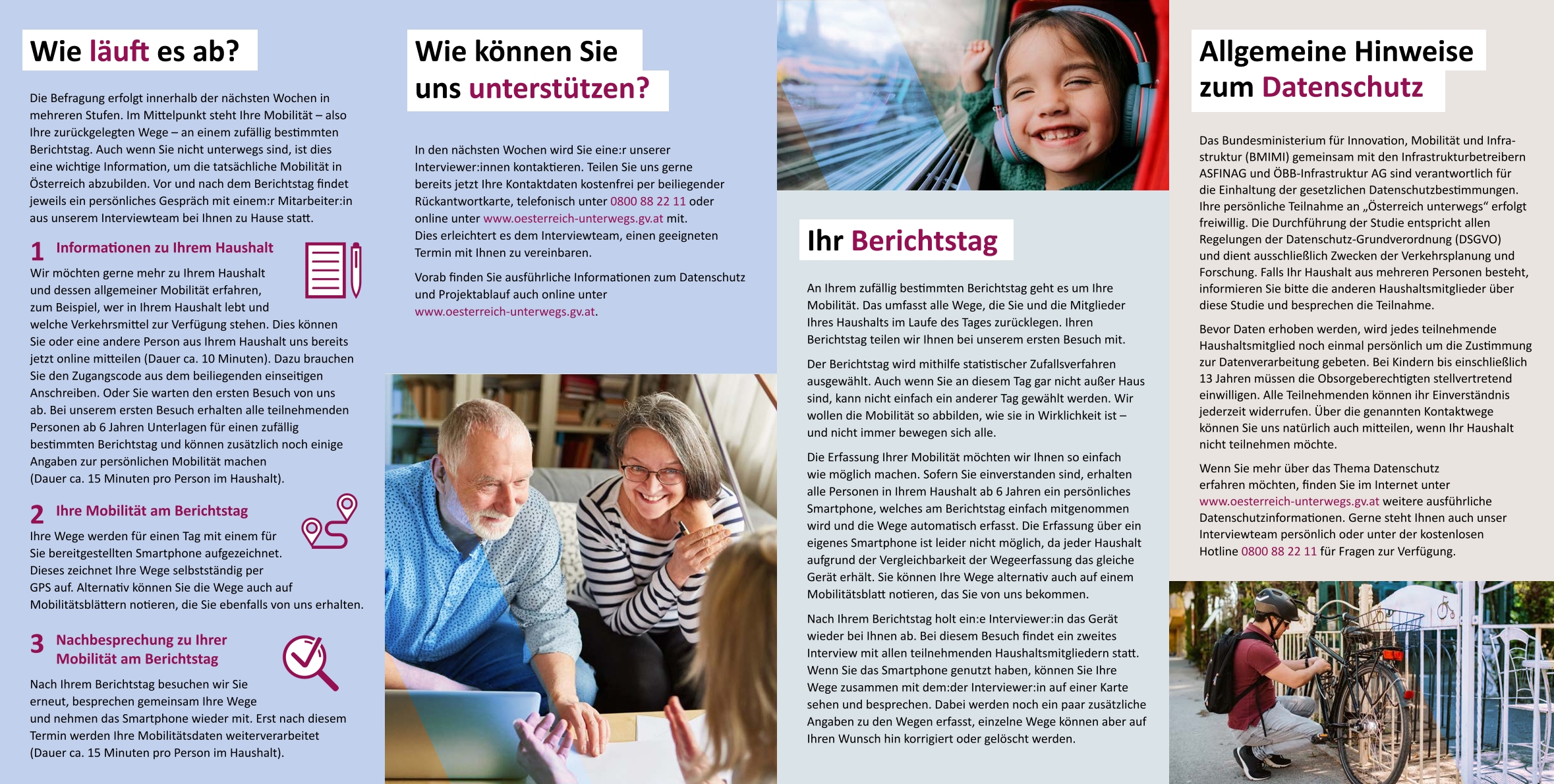 Die Teilnahme an der Studie ist freiwillig, aber sehr wichtig: Nur mit einer breiten Beteiligung kann ein genaues Bild der Mobilität in Österreich gewonnen werden. Die Ergebnisse fließen in die Planung von Straßen, Radwegen, Gehwegen und öffentlichen Verkehrsmitteln ein, um das Angebot besser auf die Bedürfnisse der Menschen abzustimmen.