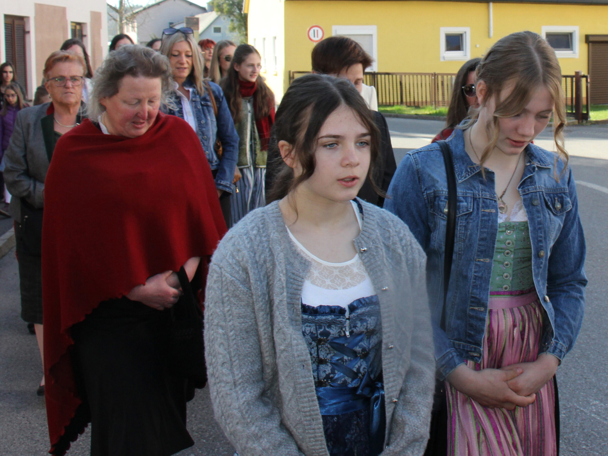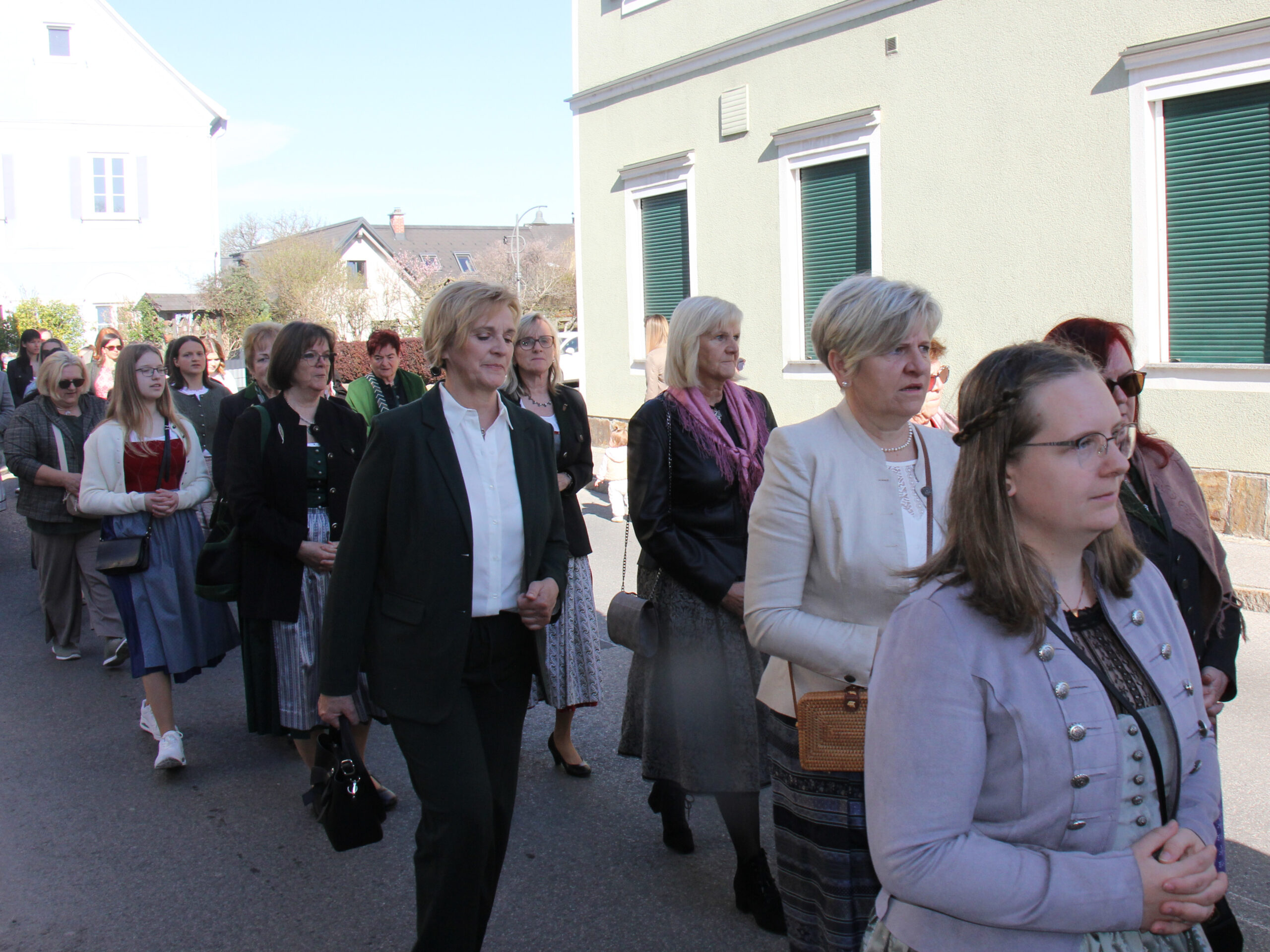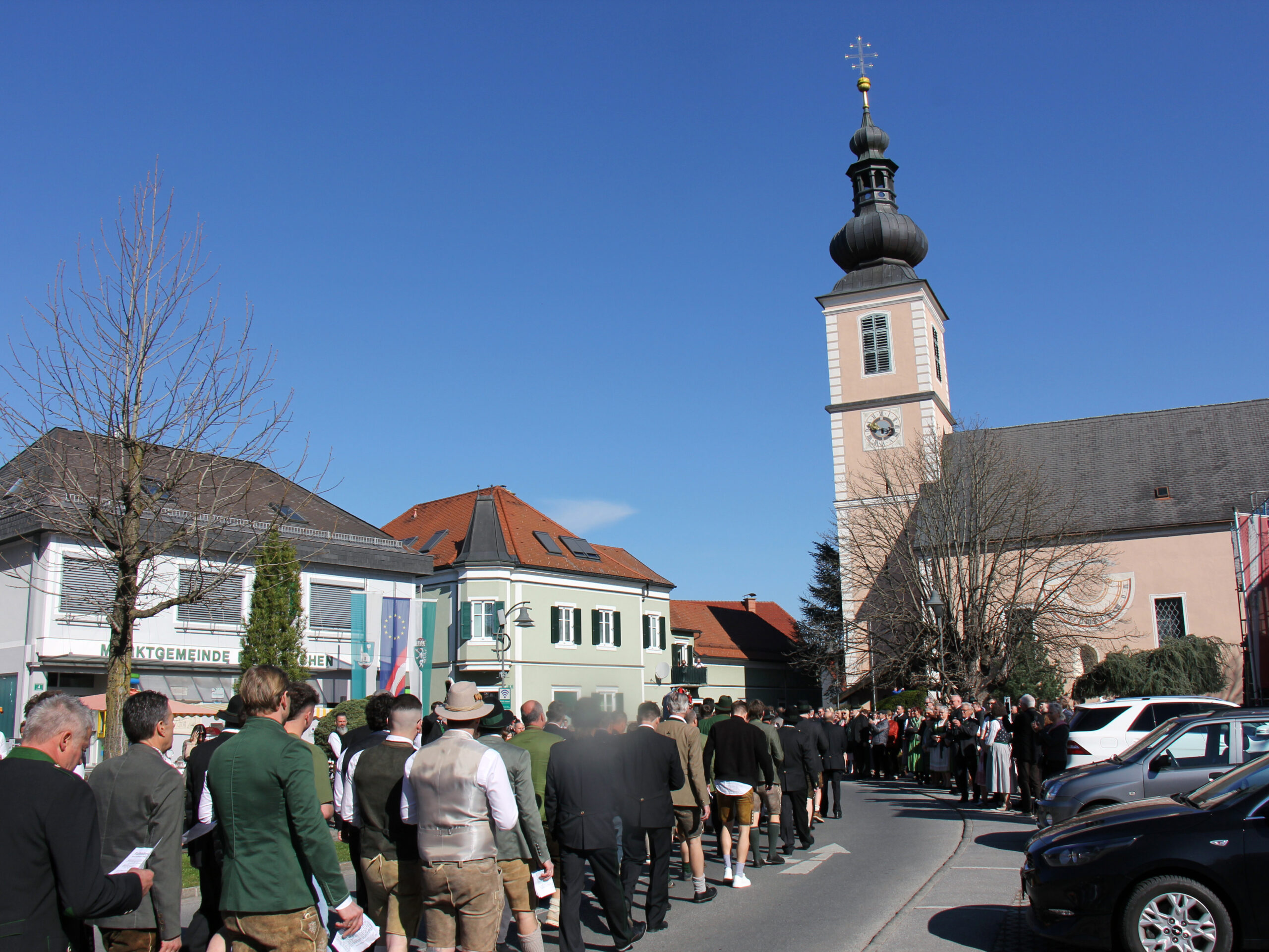 Nach dem Auszug der letzten Gruppe fand in der dicht besetzten Kirche das Spätamt mit Provisor Mag. Wolfgang Pristavec statt. Der Chor „pro musica“ umrahmte mit kräftigen und stimmgewaltigen Stimmen vom Sopran bis zum tiefen Bass diese Messe. Erst vor kurzem hatte der Chor in einer Jahreshauptversammlung mit größtem Dank und Anerkennung seine Gründerin und Chorleiterin Gerlinde Hörmann aus persönlichen Gründen in den „wohlverdienten Ruhestand“ versetzt und mit ihrer Tochter Karin Stadtegger einen Goldgriff als neue Chorleiterin bestellt. Damit ist auch für diesen Kulturträger unserer Marktgemeinde Ostern 2026 der Beginn einer neuen Zeit.