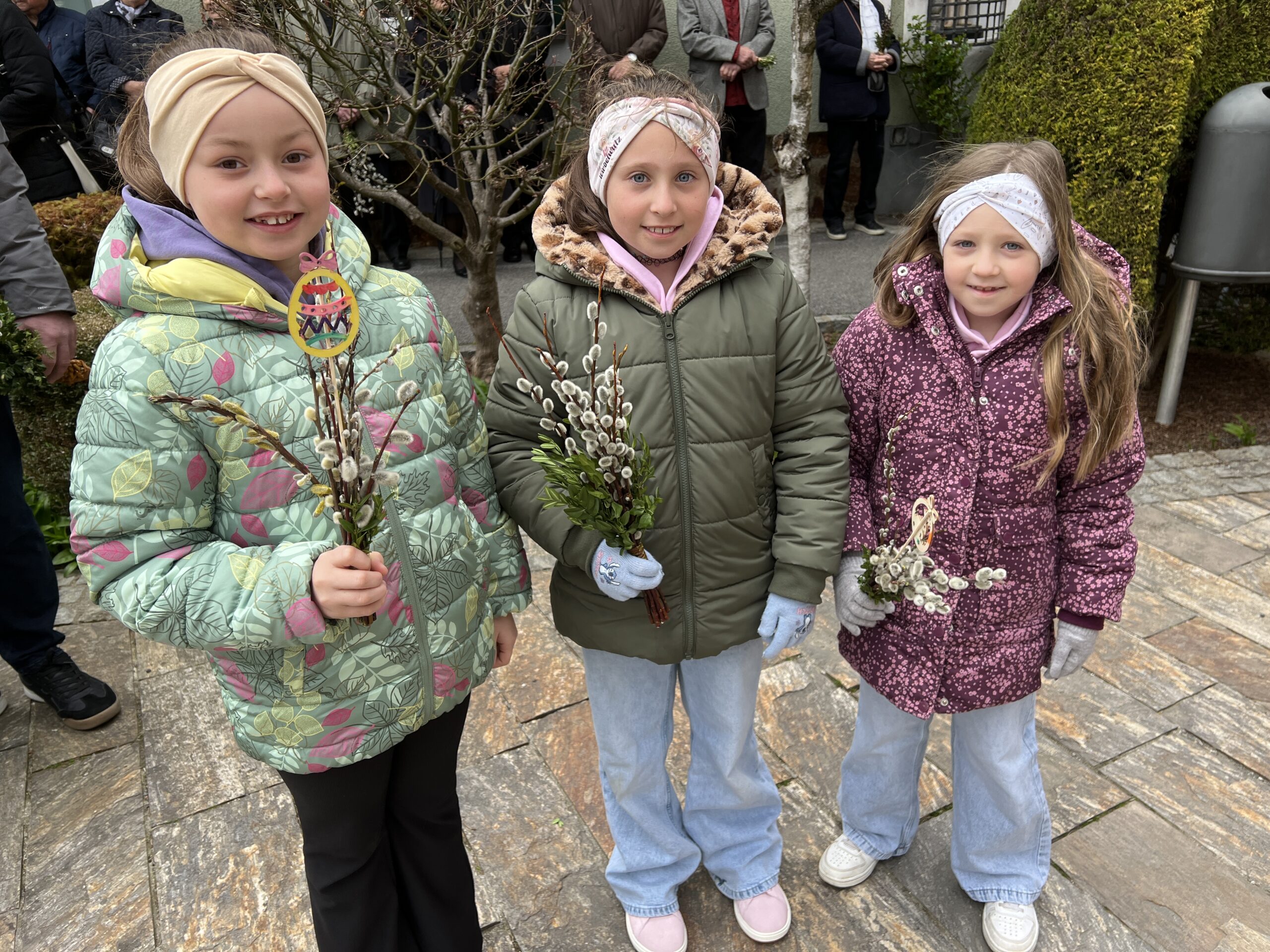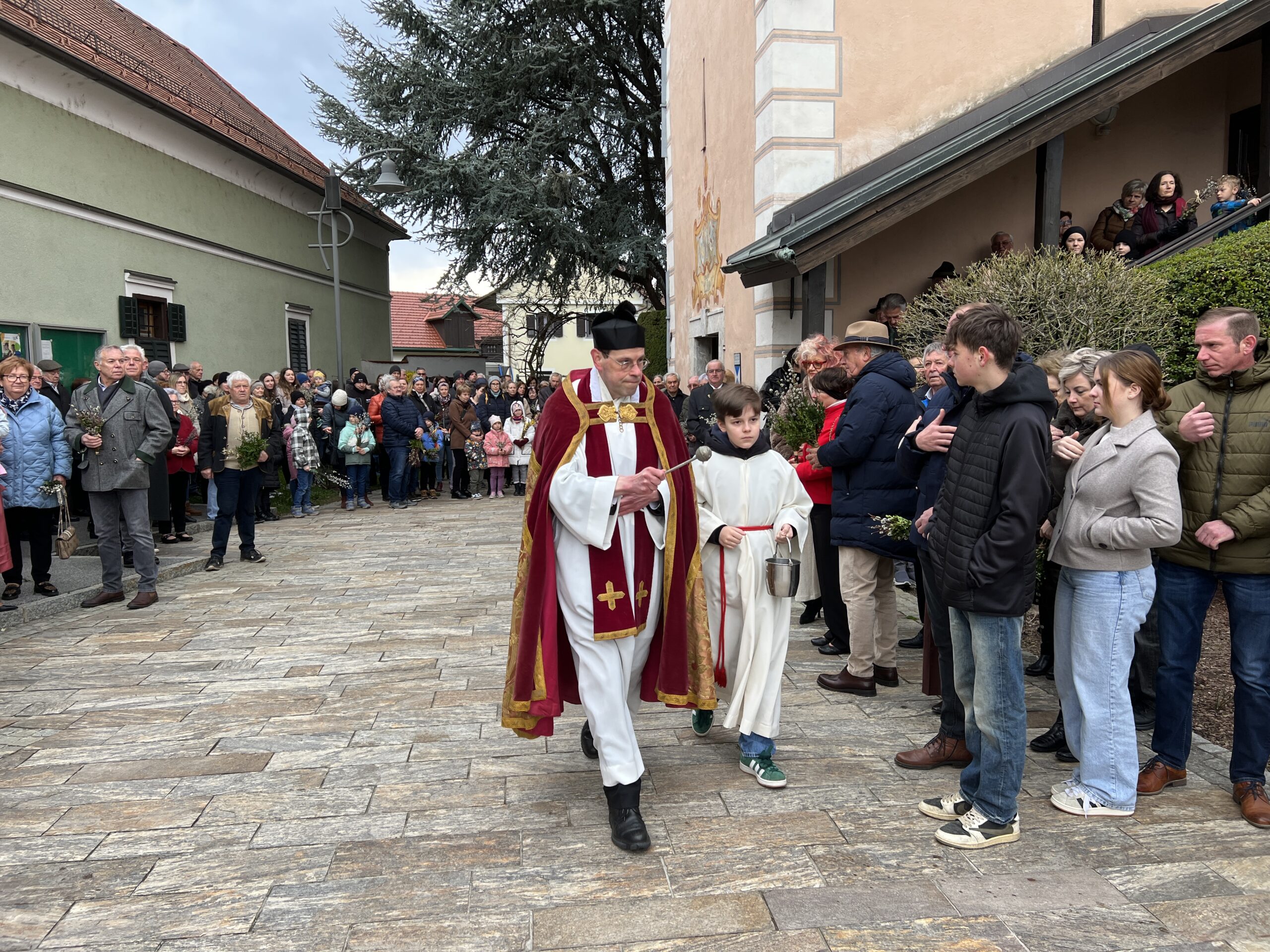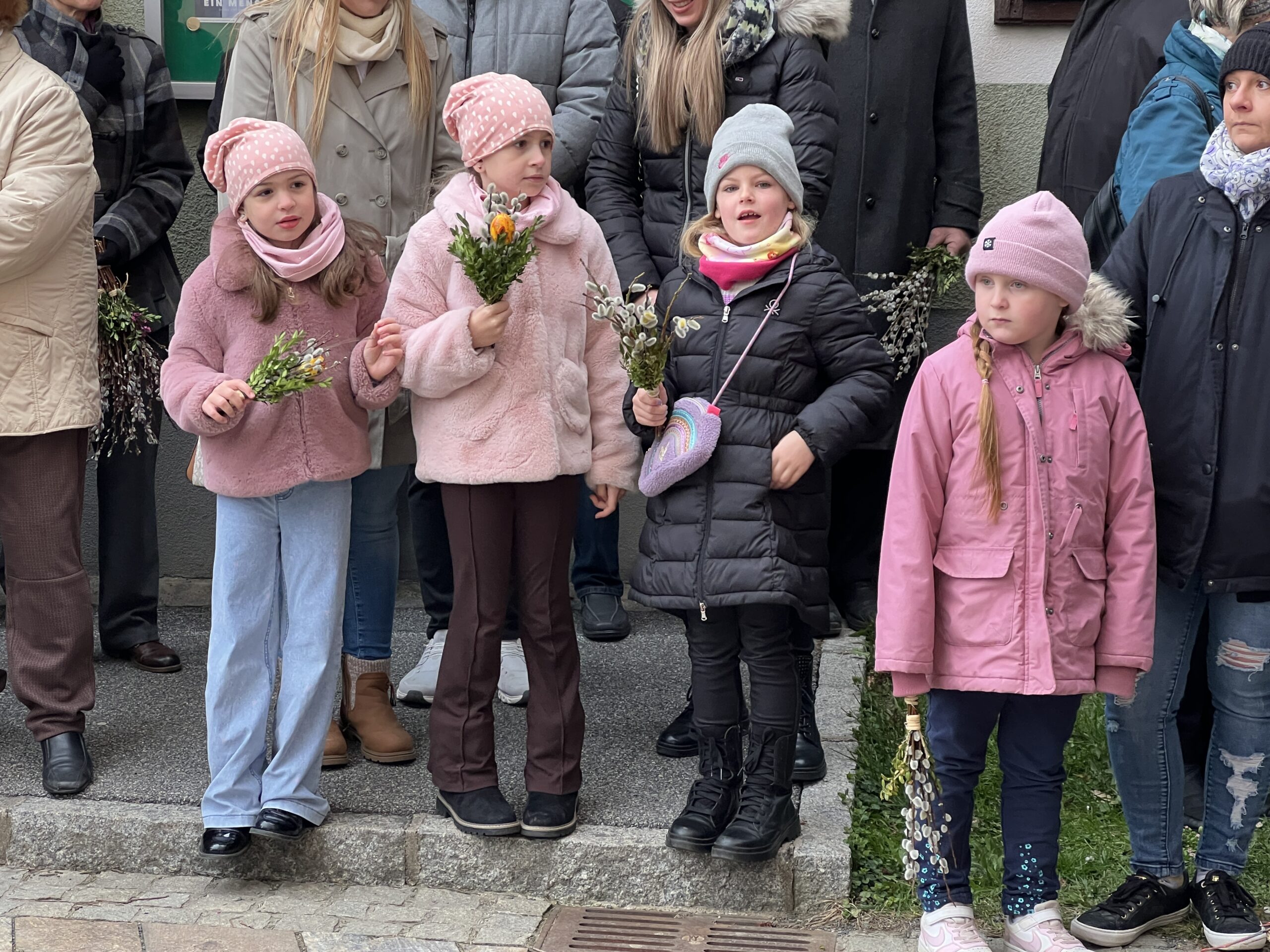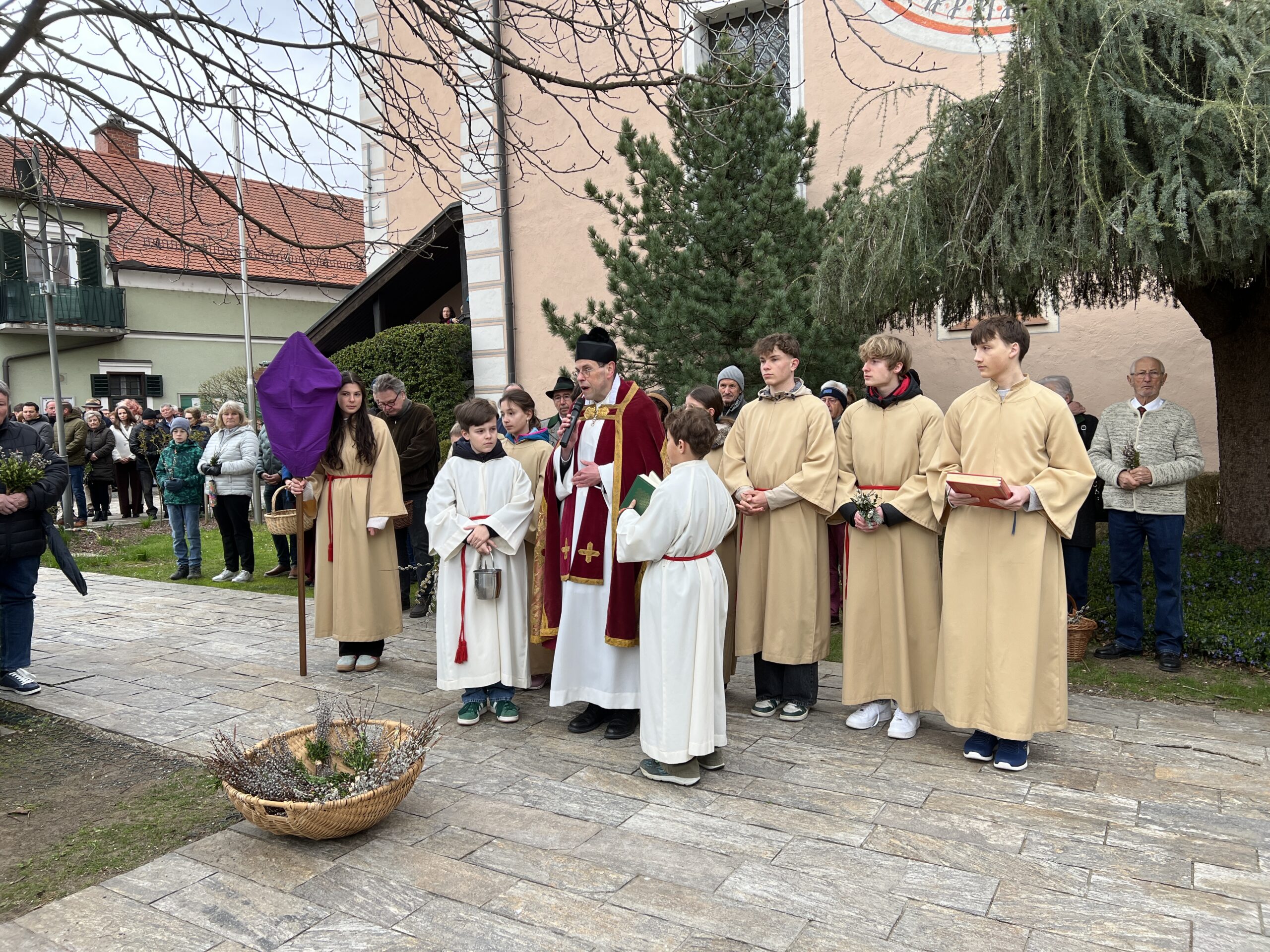 Vor der Pfarrkirche haben sich trotz winterlichen Temperaturen unzählige Bewohner mit kleinen und größeren Palmgestecken eingefunden. Diese wurden von Provisor Mag. Wolfgang Pristavec gesegnet.