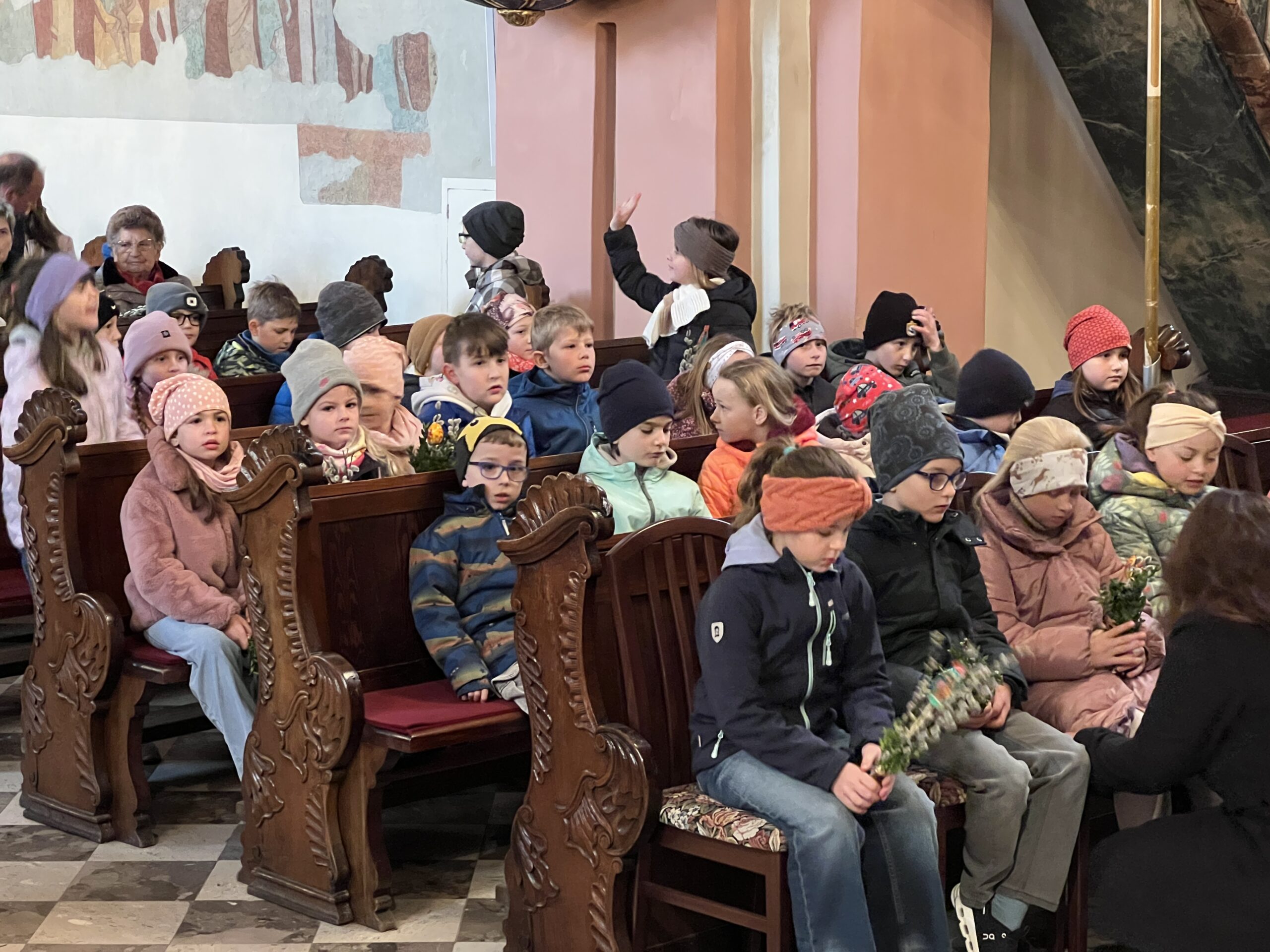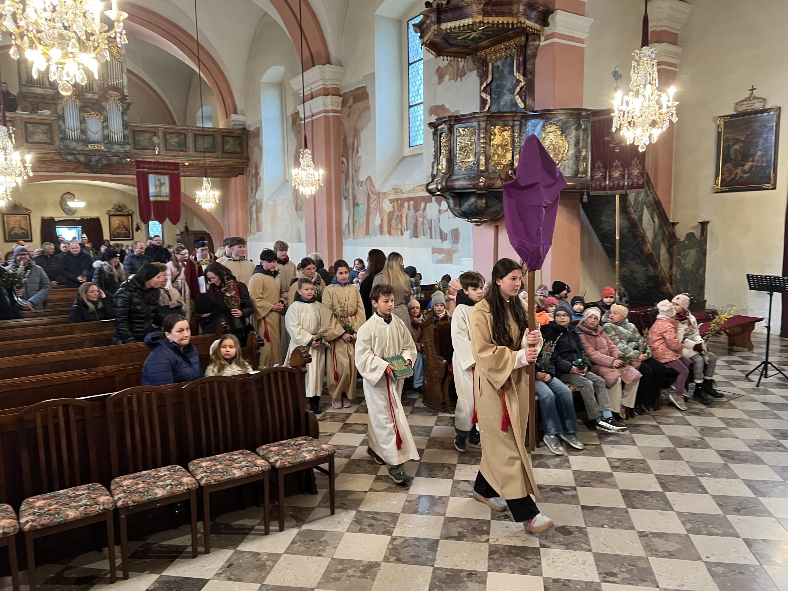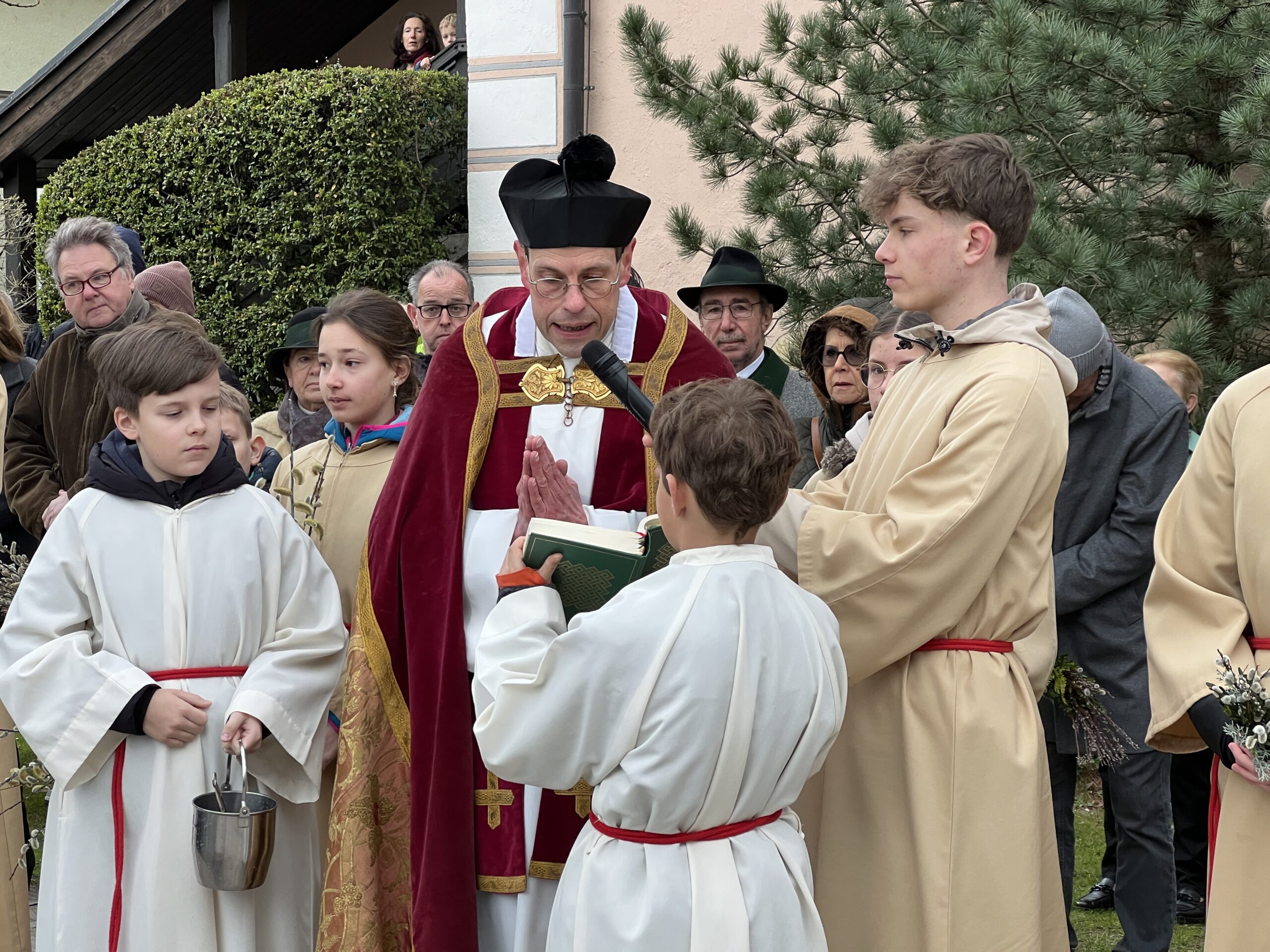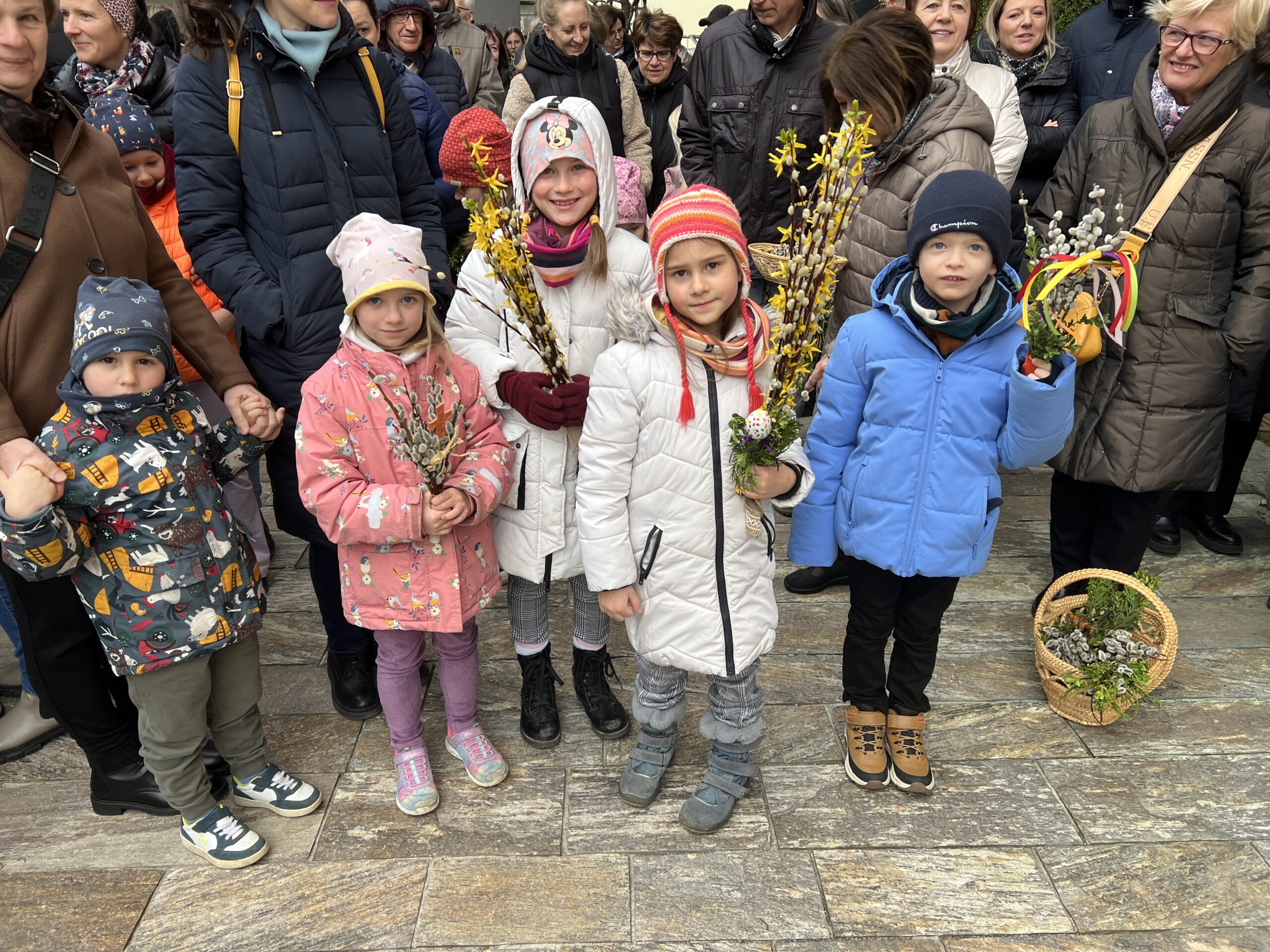Vor der Pfarrkirche haben sich trotz winterlichen Temperaturen unzählige Bewohner mit kleinen und größeren Palmgestecken eingefunden. Diese wurden von Provisor Mag. Wolfgang Pristavec gesegnet.