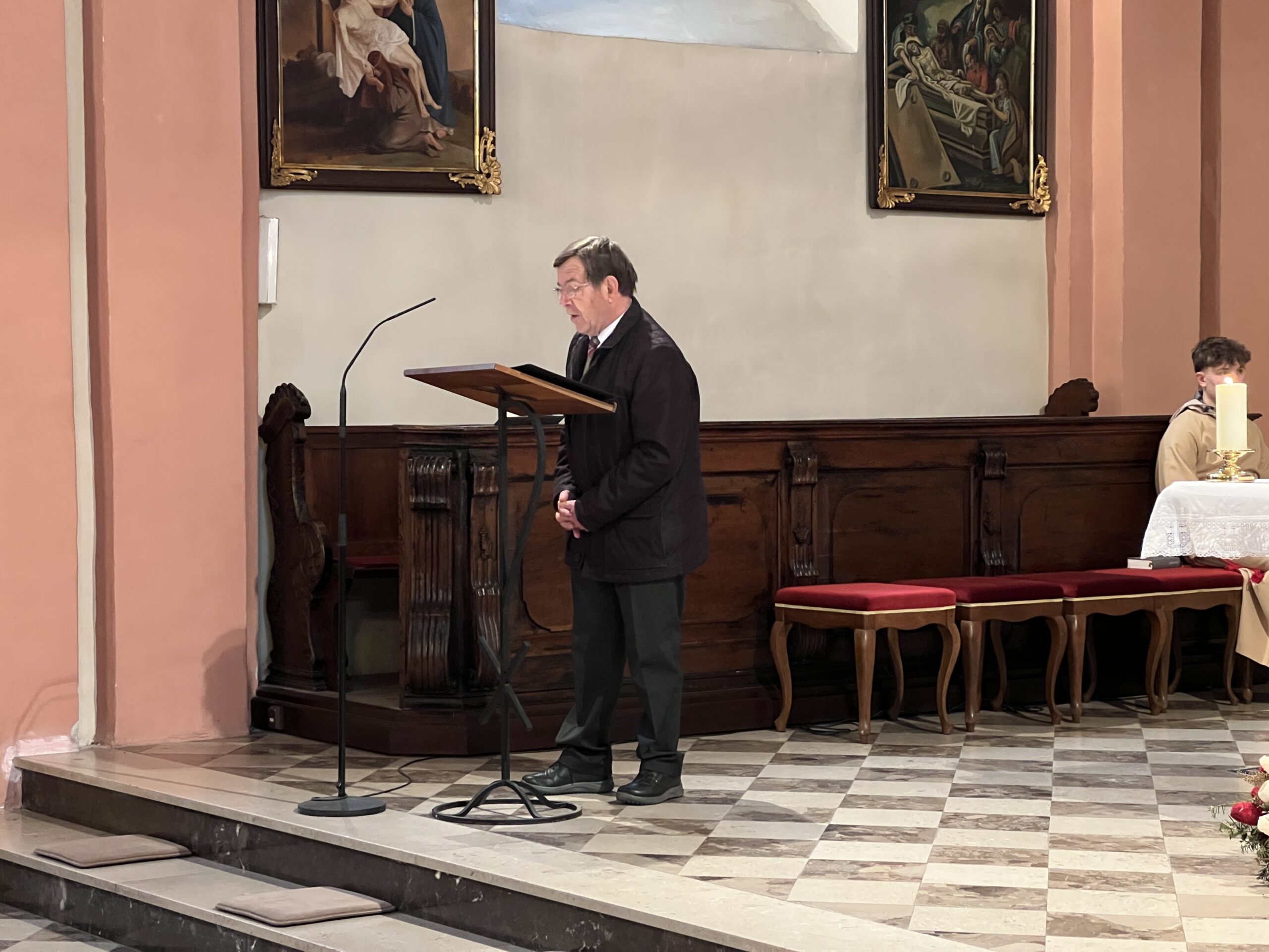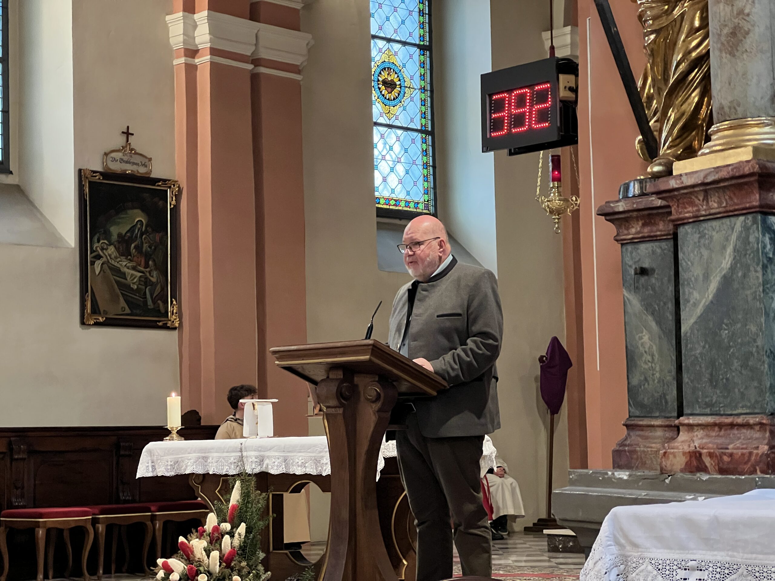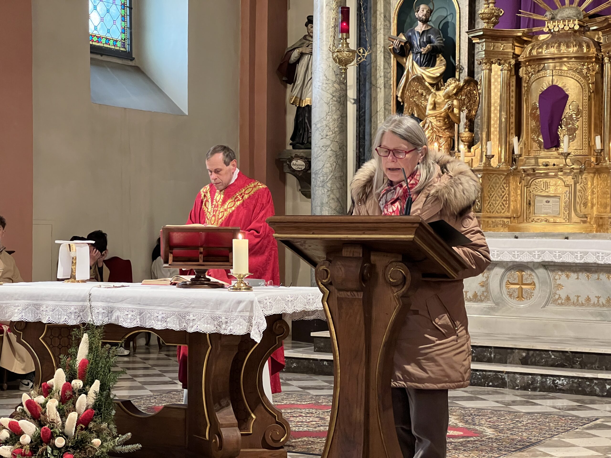 In der vollbesetzten Pfarrkirche trugen im folgenden Gottesdienst Maria Roth und Franz Zweiger die Geschichte der Verurteilung und Kreuzigung Jesu vor.