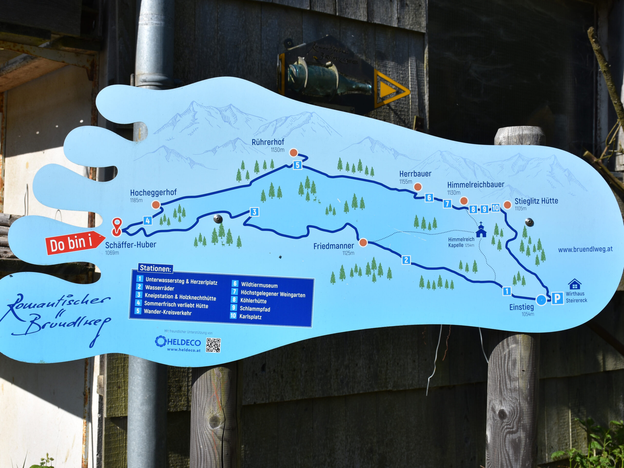 Die erste und wichtige Abzweigung nach links übersah man in der Euphorie der ersten hundert Schritte und folgte dem Weg zur Himmelreichkapelle. Der Weg war nicht falsch, alle Wege führen zum Gasthaus, nur etwas weiter. Nach einige Telefonaten befanden sich schlussendlich alle auf dem Weg zur Jausenstation Schäffer-Huber, wo ein herrlicher Schweinsbraten und weitere Köstlichkeiten auf die inzwischen etwas ermüdeten Wanderer wartete.