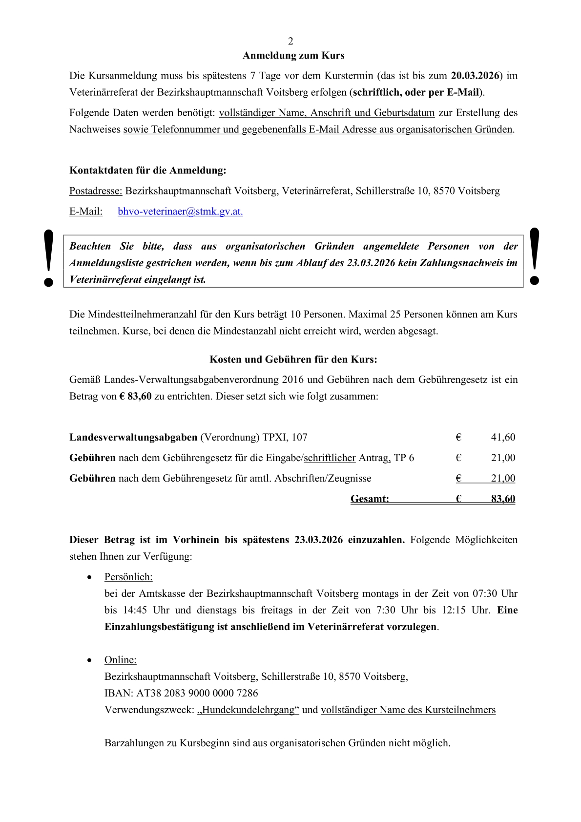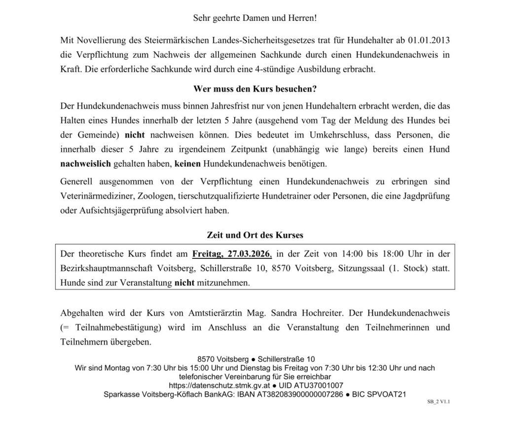 Gesamte Kundmachung der BH Voitsberg zum Download: