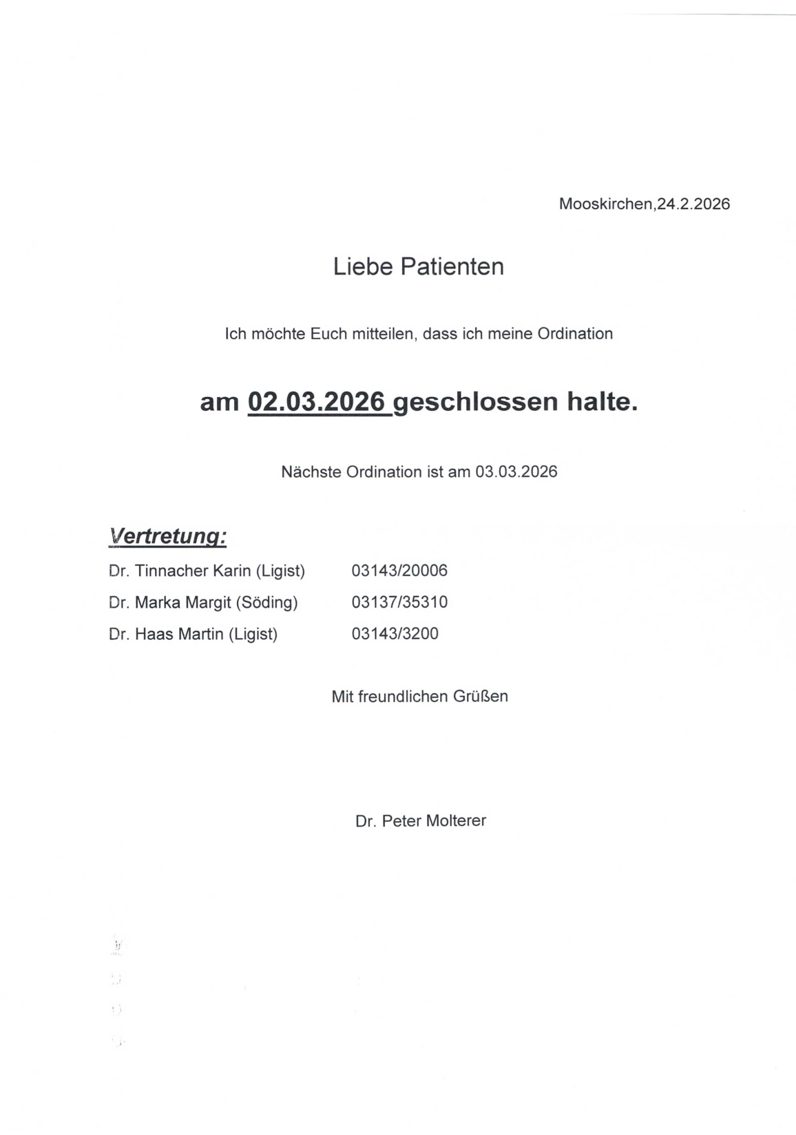 Ordination Dr. Molterer | GESCHLOSSEN
