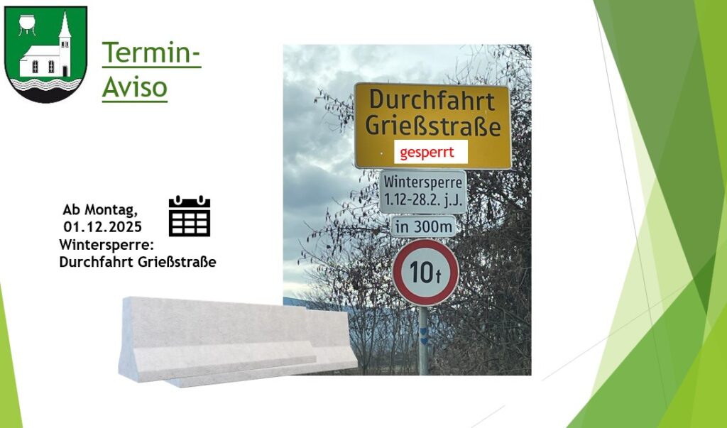 Wintersperre – Durchfahrt Grießstraße