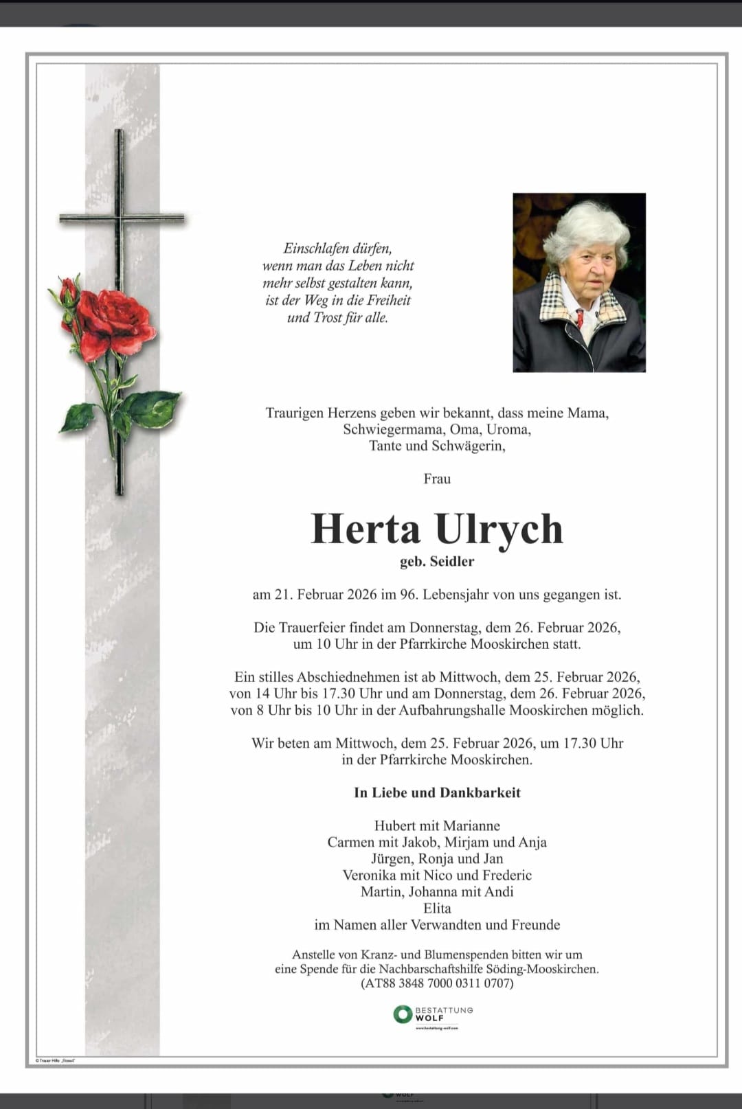 23. Februar 2026 2026-02-23 16:34Todesfall Herta Ulrych – aus Mooskirchen