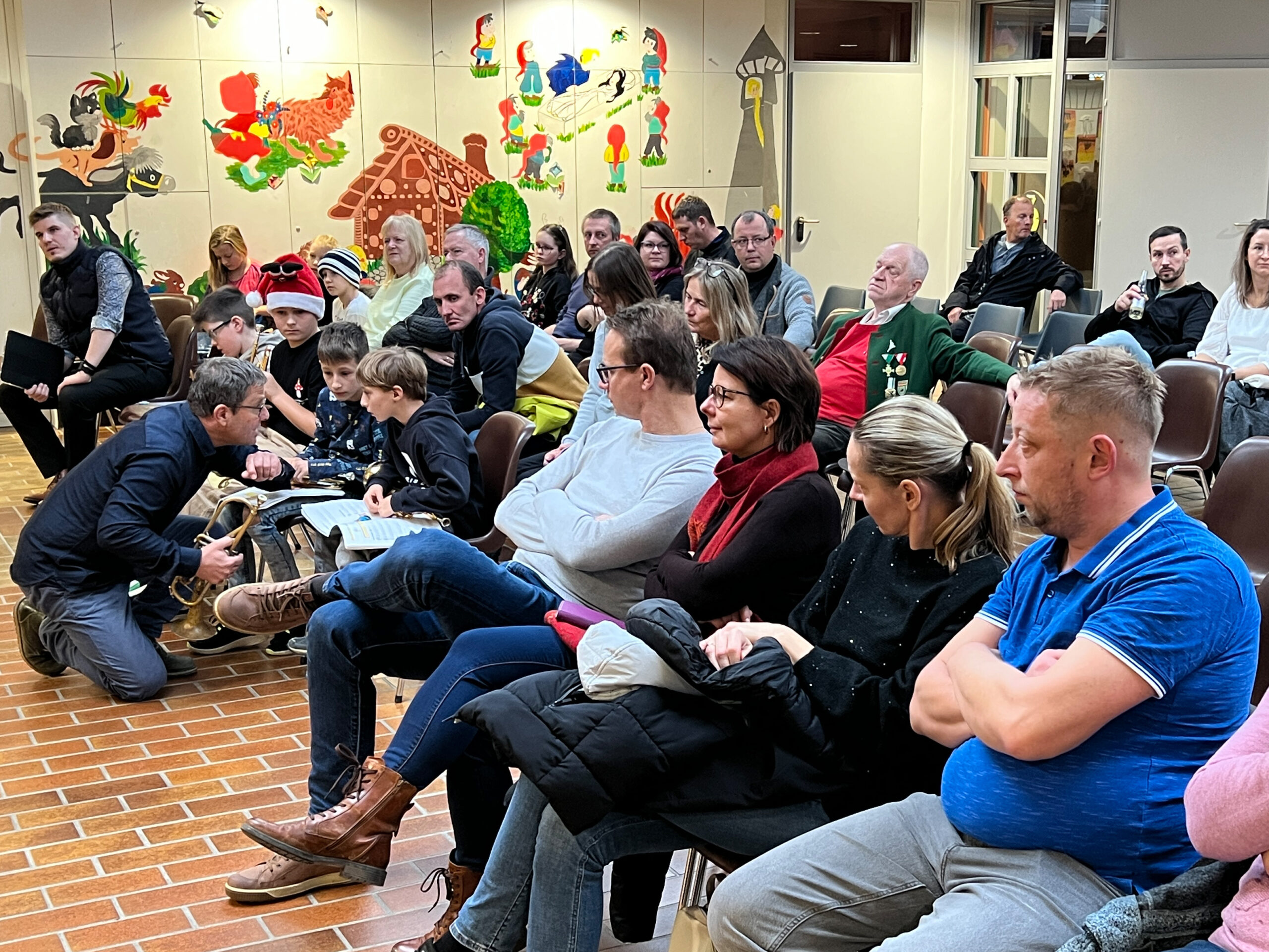 Ein besonderes Zeichen der Verbundenheit der anwesenden Eltern und Jugendlichen mit diesem Projekt zeigte sich in der einbrechenden Dunkelheit vor dem Gebäude. Als die 69 Weihnachtspakete in den Wagen geladen werden sollten, formierten sich spontan alle Anwesenden zu einer lachenden Menschenkette und die Pakete wanderten von Hand zu Hand in den Wagen von Davy Koller.
